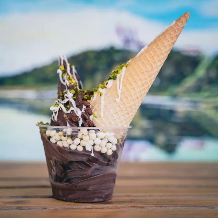 »Ponujamo že narejene kupe, potem imamo kupo, ki si jo lahko sam sestaviš. Lahko si seveda izbereš samo tekoči sladoled in morda kakšen preliv ali posip - čisto po želji. Za tiste najbolj kreativne pa imamo tudi možnost, da si sestavijo popolnoma svoj sladoled," opisuje Domen in kot iz topa izstreli odgovor na vprašanje kdo je najbolj navdušen nad raznovrstno ponudbo: »Otroci! Takoj, ko pridejo in pogledajo v vitrino, se jim zasvetijo oči. Zelo mi je bilo zanimivo, da je prišlo veliko starejših ljudi. Povedali so, da ko so bili mlajši, je bil sladoled samo tak in to jim vzbuja nostalgijo. Imamo goste v zrelih letih, ki pridejo k nam prav vsak dan. Eni imajo raje klasiko: okus čokolada, vanilija ali jogurt. To so tudi naši stalni trije okusi, vsak teden pa četrti okus, ki je sadni, rotiramo, da popestrimo ponudbo. Tako smo imeli že borovnico, malino, jagodo, pomarančo. Kar se tiče posipov je pri otrocih najboljše to, kar je barvno - razni bonboni, mrvice. Starejši imajo rajši pistacijo, lešnike ali čokoladne crispy kroglice. Kar se tiče izbire prelivov pa so največkrat izbrani čokoladni, jagodni ali višnjev okus.