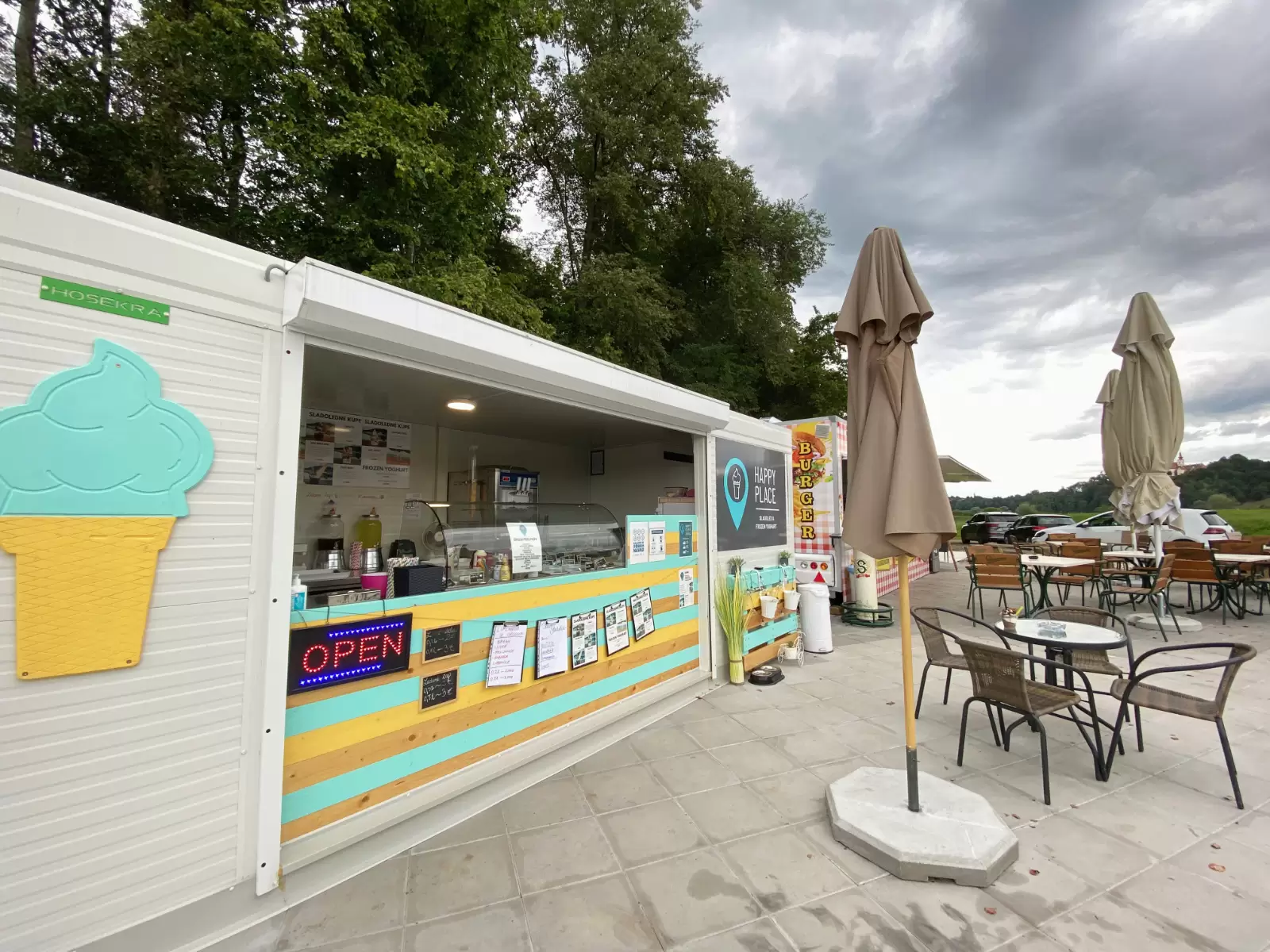 Poznaš zgodbo inženirja medijske produkcije in magistrico zdravstvene nege, ki sta se odločila, da bosta prodajala sladoled? Ne, ne gre za domišljijsko zgodbo, gre za čisto resnično zgodbo, ki se odvija v stičišču Slovenskih goric. Gre za zgodbo, ki je polna domišljije, kreativnosti, iznajdljivosti, vztrajnosti, neomajnega truda in upanja. Upanja, da so nam sanje dosegljive, če se le dovolj vztrajno trudimo, da jih dosežemo. Gre za zgodbo dveh mladih ustvarjalnih duš, ki želita jezeru ob Sveti Trojici dodati svoj pisan kamenček. Prostor, kjer se bomo srečevali na prvih zmenkih, kjer bomo svojim otrokom brisali mlečne brkice, prostor, kjer se bosta zakonca v zrelih letih smejala iz srca, ko bosta nostalgično okušala točeni sladoled – točno takšen okus ima kot pred tridesetimi leti! Spoznaj Domna in Rosano kreatorja Happy place hiške, ki se nahaja tik ob Trojiškem jezeru v mirnem in varnem zavetju mogočnih dreves in z veličastnim pogledom na cerkev sv. Trojice.