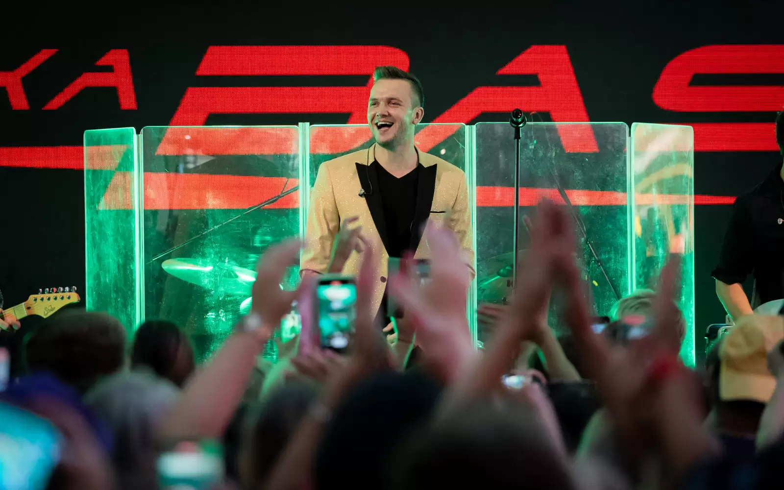Alen Ploj in Žan Serčič na Alenovem 30. rojstnem dnevu, kjer je bil prav Žan gost presenečenja.