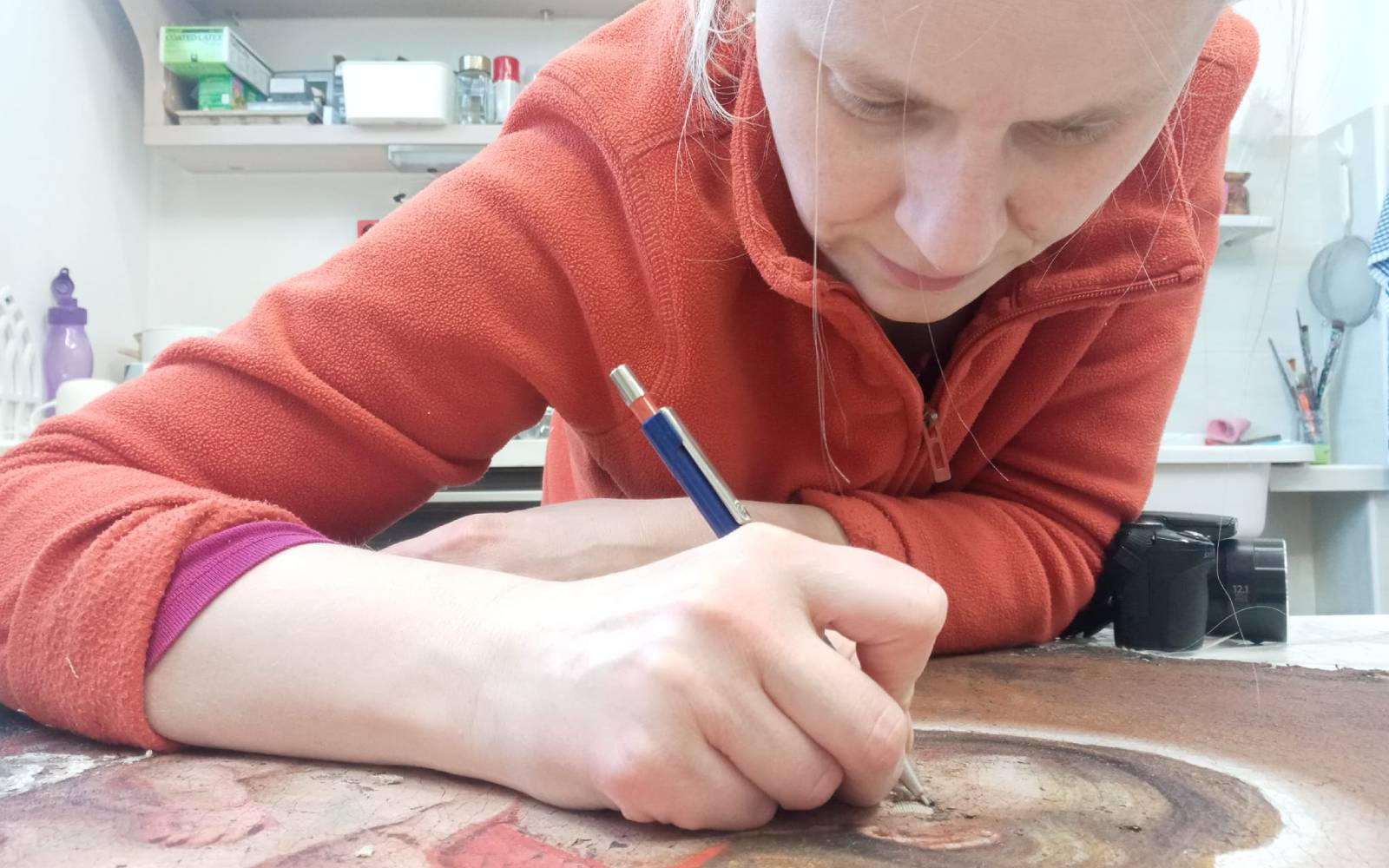 Ki sem mu jo zdaj že povsem zasedla (smeh, op. p.). Tudi svojo sobo sem spremenila v pisarno, saj je tam gora fasciklov s papirji. Upam, da mi vse skupaj kmalu uspe preseliti v delavnico, sčasoma pa bo najbrž treba poiskati in najeti primernejši prostor, saj sedanji ne bo več dovolj.