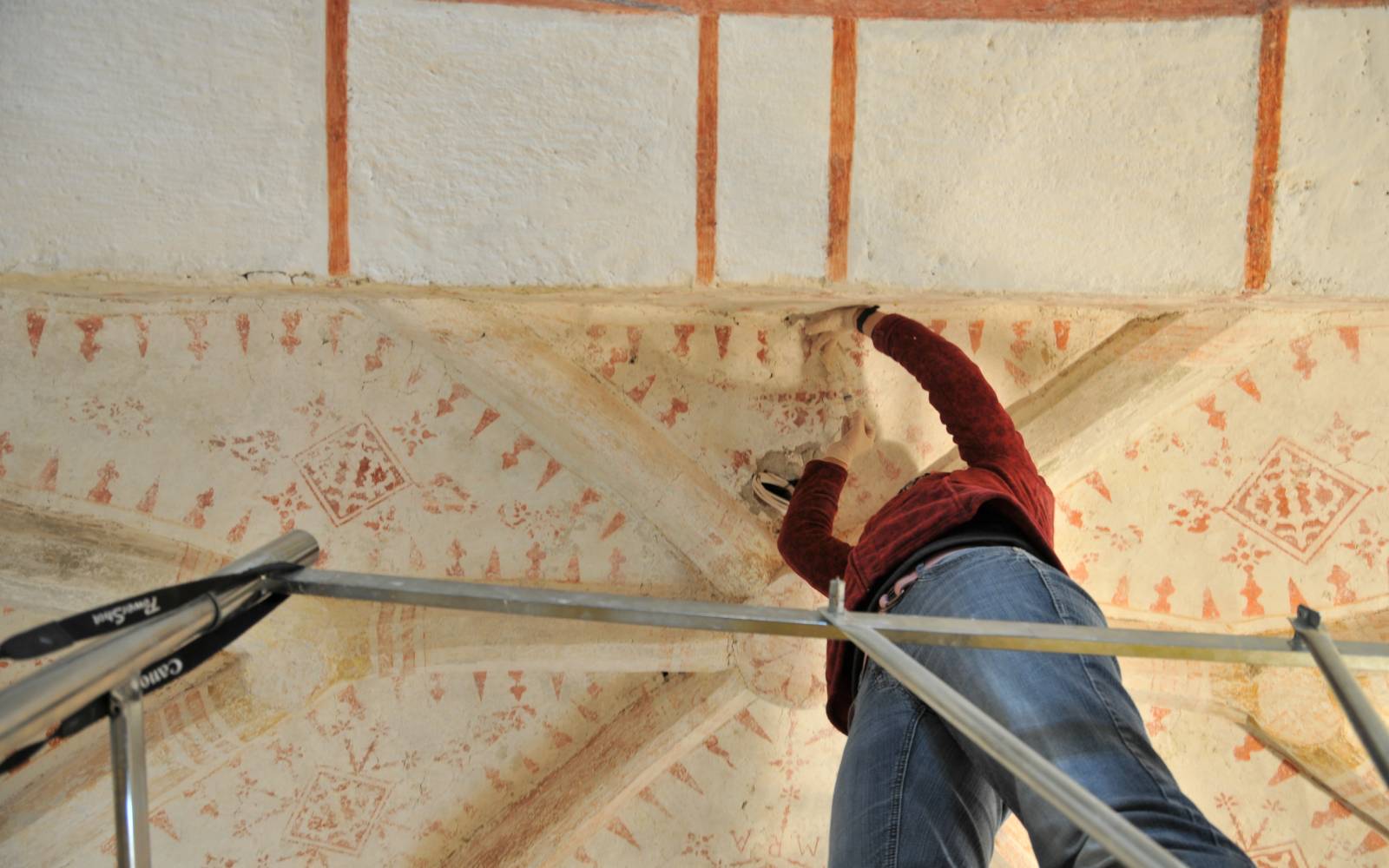 Konservatorsko-restavratorsko delo je pogosto nevarno, saj poteka tudi na visokih gradbenih odrih. Foto: osebni arhiv