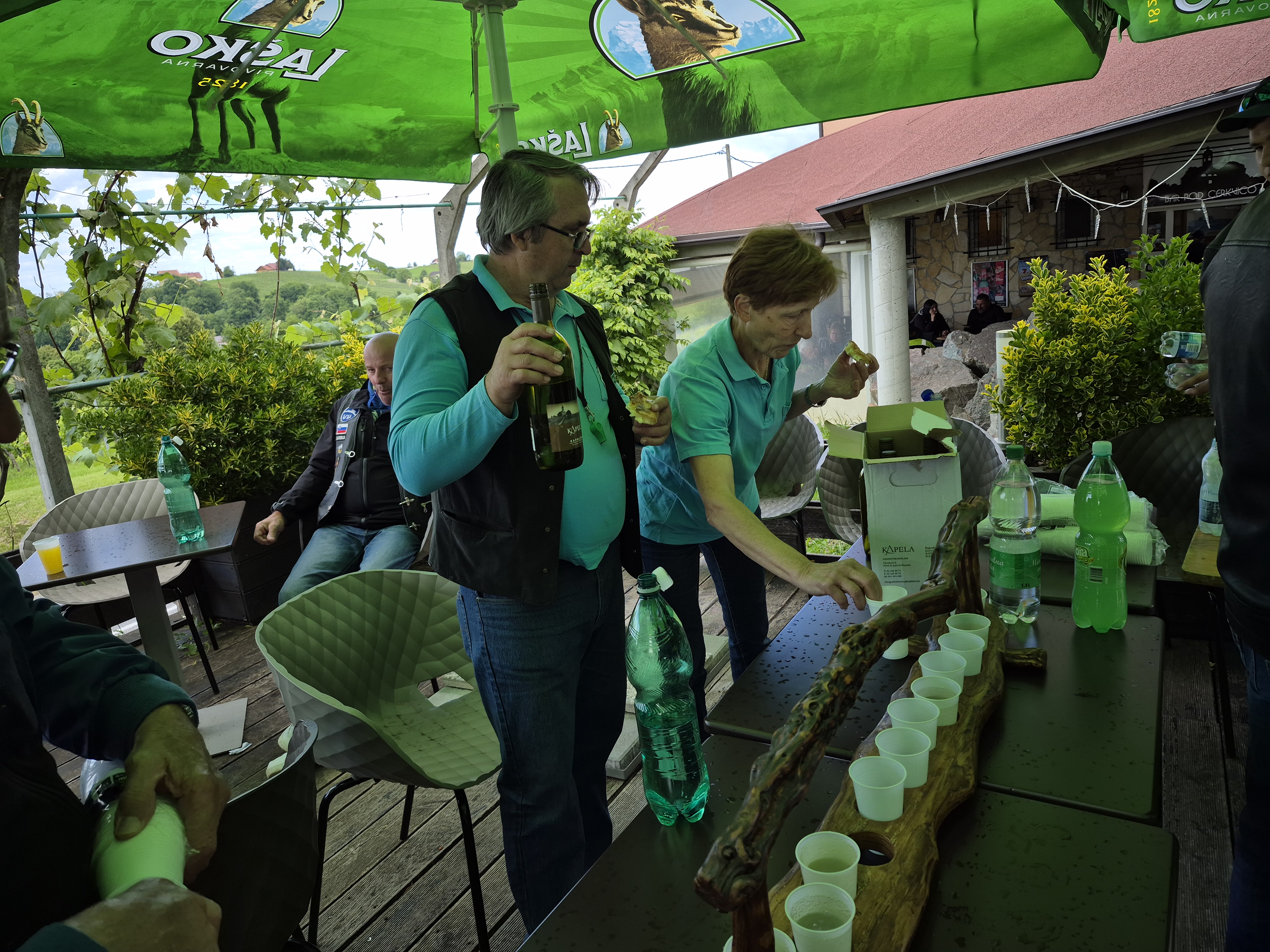Pot se je nadaljevala proti Kapeli, kjer je sledila krajša osvežilna postojanka pred Barom pod Cerkvico. Tu so si udeleženci izmenjali vtise, se okrepčali in uživali v sproščenem druženju, ki je dodatno obogatilo že tako prijetno vzdušje.