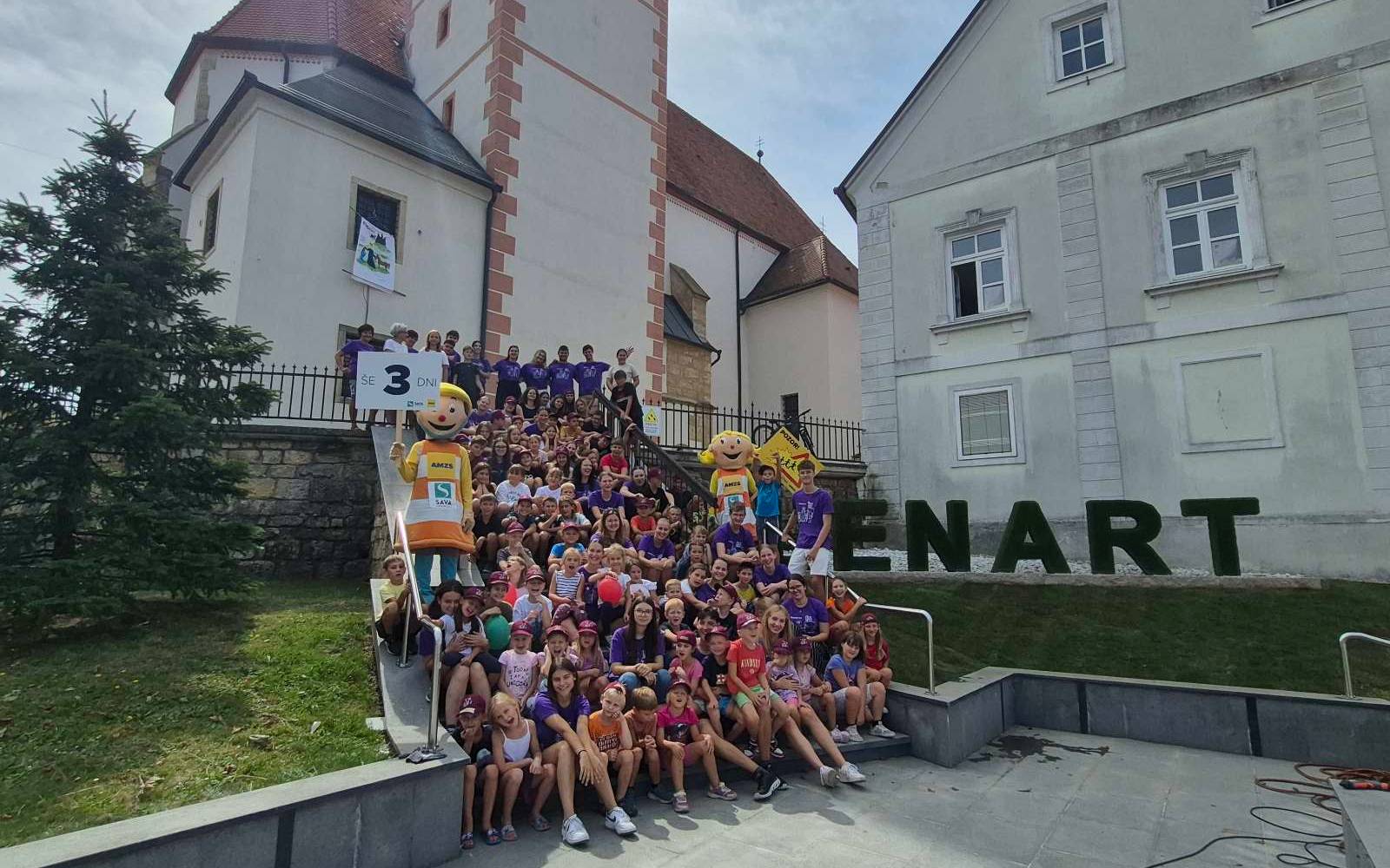 Maskoti, ki jima je bilo v kostumu pri visokih poletnih temperaturah pošteno vroče, sta pri cerkvi sv. Lenarta naleteli na veliko skupino otrok, ki je pravkar zaključila oratorij, vzgojno počitniški program za otroke. Letošnji je potekal pod geslom Osvobodi me, osrednja tema pa je bilo spoznavanje življenja in dela župnijskega zavetnika sv. Lenarta, katerega relikvije prihajajo v Lenart 7. septembra. Malce so poklepetali, nato pa se za spomin še fotografirali.