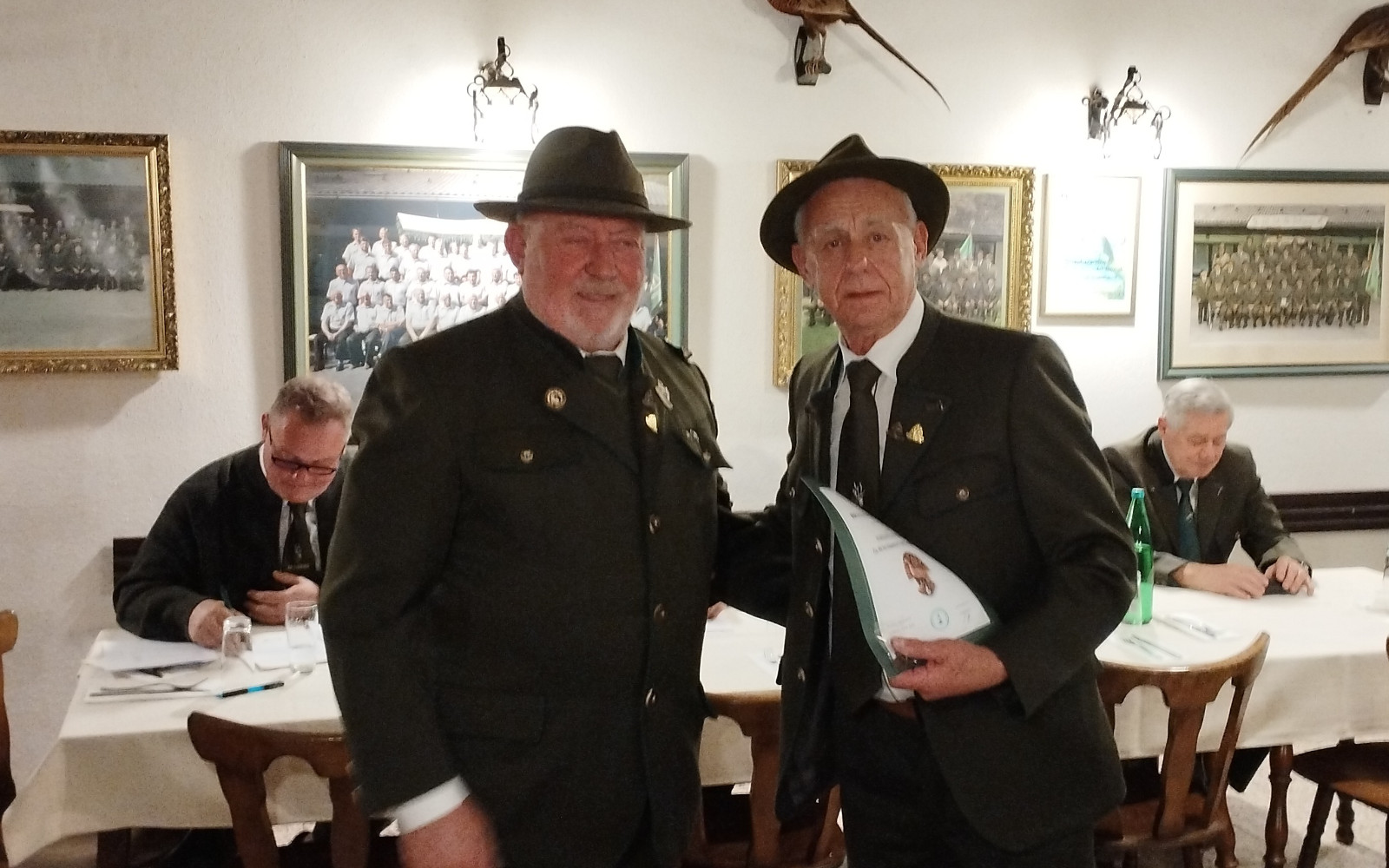 Starešina LD Dobrava Franc Slekovec je podelil spominski znak LZS za 40 let članstva v lovski organizaciji Branku Grajfonerju. Foto: Jure Toš