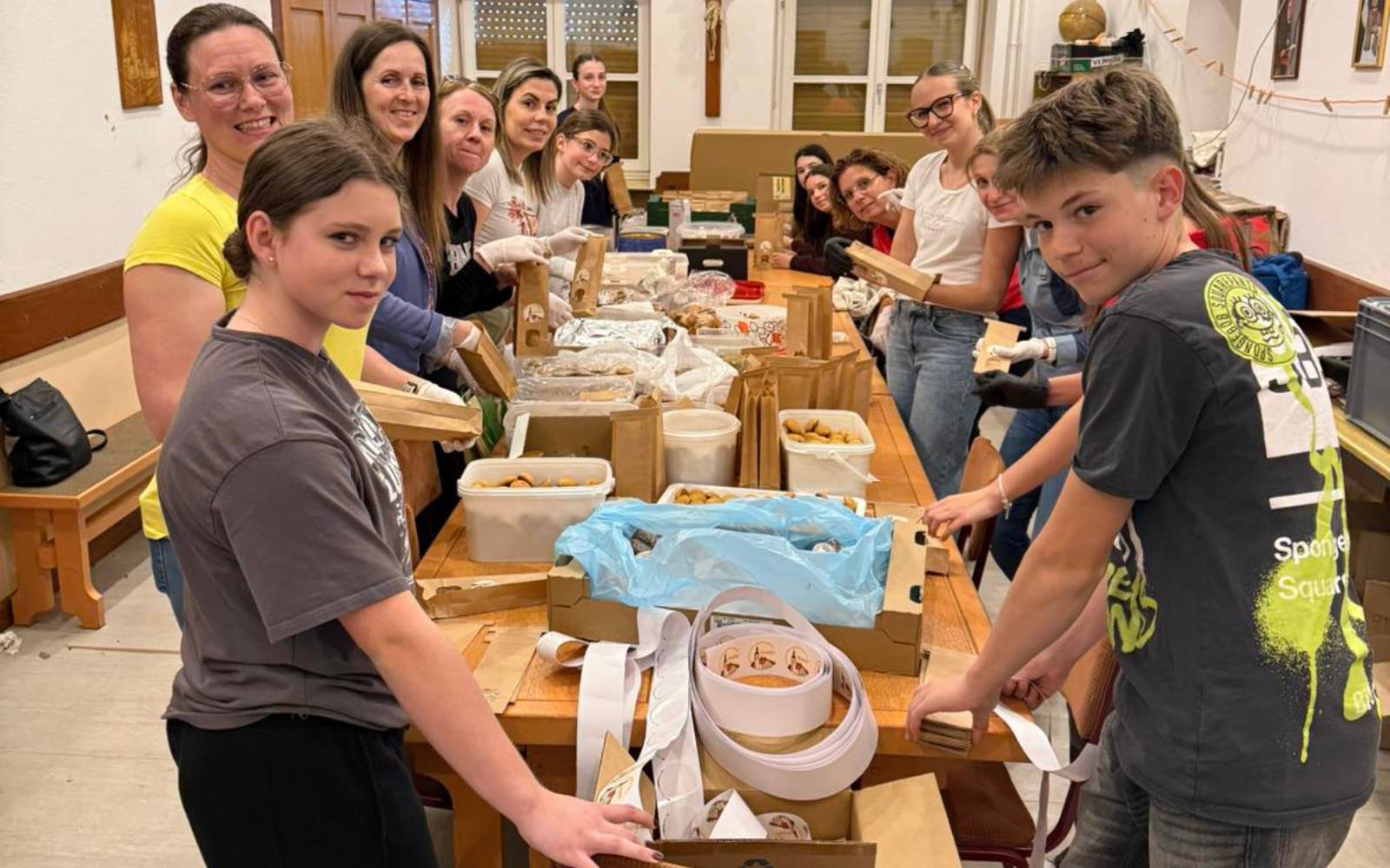 Lanskoletni birmanci in njihovi starši so pripravili paketke medenjakov, ki so jih spekli župljani. Foto: MP