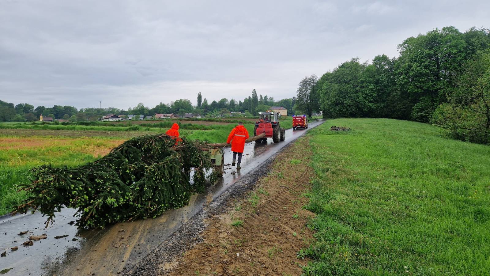 Gasilci Gasilske enote iz Lokavca so majsko drevo kljub slabemu vremenu postavili že včeraj, v soboto. Foto: GE Lokavec