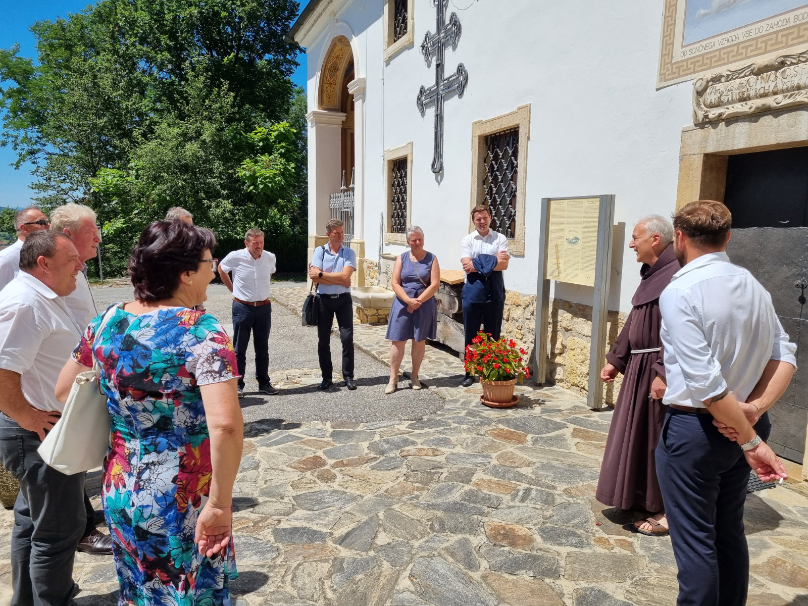 V občini Sveta Trojica v Slov. goricah se je danes sestal Klub županov in svetnikov NSi. Gostitelj neformalnega srečanja, župan David Klobasa, je goste najprej sprejel v občinski stavbi, nato pa so skupaj odšli do cerkve, kjer se jim je pridružil tudi minister za infrastrukturo Jernej Vrtovec. Po končanem ogledu je sledila pogostitev in pogovor v samostanski kleti.