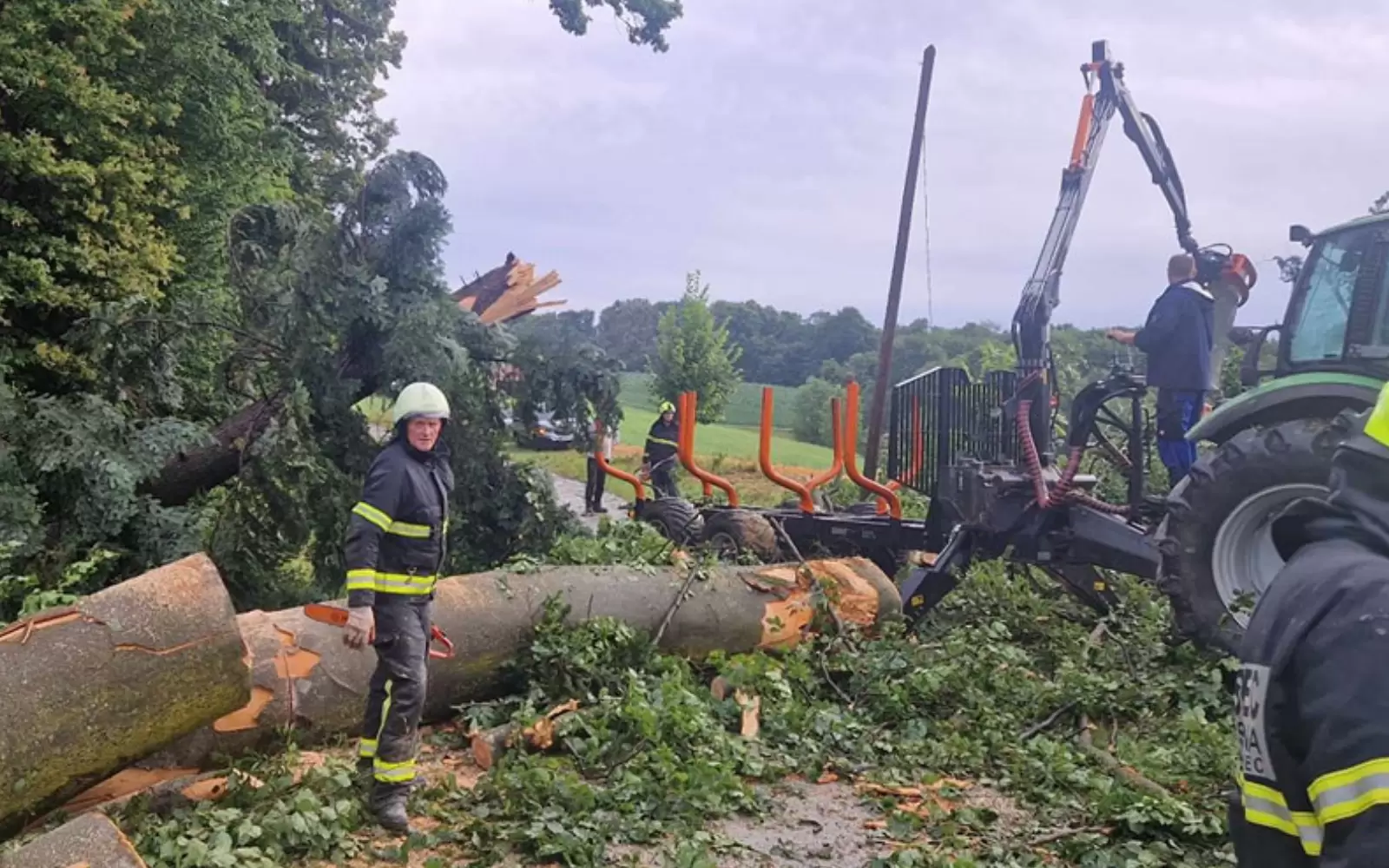 »Na terenu je več kot 35 gasilcev. Pomaga jim še kakšnih osem tehničnih ekip - z različnimi stroji, traktorji, gradbenimi stroji - ki zagotavljajo prevoznost oziroma dostop, da lahko gasilci nato opravijo svoje delo kar se tiče sanacije streh in podobnega.«