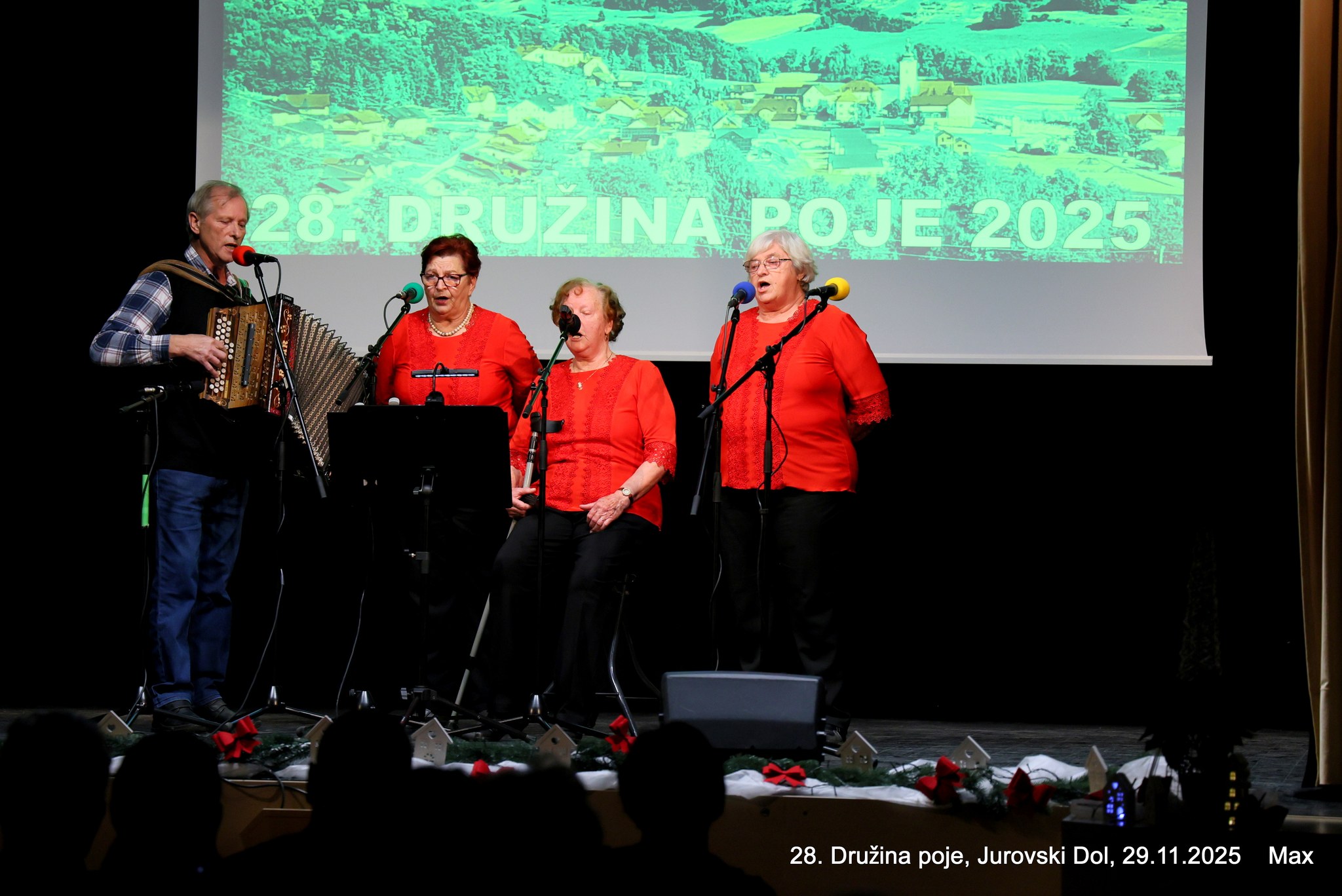 V soboto, 29. novembra, je v Jurovskem Dolu potekala 28. tradicionalna prireditev Družina poje. Na njej je zapelo in zaigralo 12 družin, oziroma skupin, ki gojijo petje in muziciranje v družinskem krogu. To so Jelka Ploj in vnukinja Ana iz Sp. Partinja, pet sester družine Vollmaier iz Remšnika pri Podvelki, Pevsko instrumentalna skupina Rožmarin, člani družin Mihalič in sorodniki iz Zg. Kungote. Vokalna skupina Mavrica iz Jarenine, duet Ivica in Jelka iz Cerkvenjaka in Sp. Partinja, družina Breznik iz Svete Ane, harmonikar Dejan Arcet iz Zg. Partinja, sestre Gajšek – vokalna skupina Stezice iz Krčevine pri Vurbergu, skupina Primas – sestrične iz družin Senekovič iz Zg. Partinja in Sedminek iz Šempetra v Savinjski dolini, družina Strmšek iz Brinjeve gore nad Zrečami, Pevke ljudskih pesmi DU Lenart in Ljudski godci iz DU Pernica.
