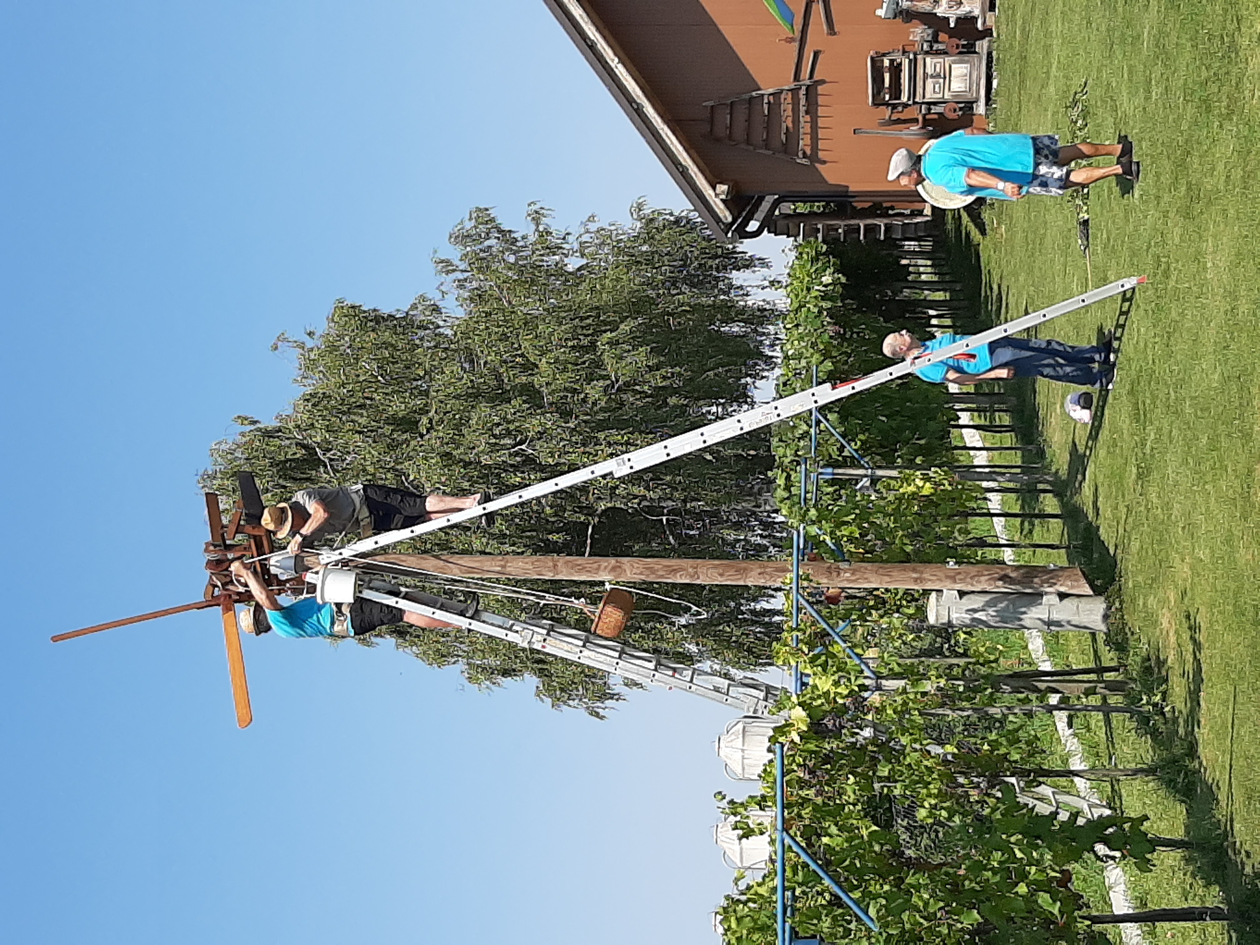 Klopotec sta spretno dvignila Franc Lupša in Edi Vuk, pri pripravi na tleh pa sta pomagala Bojan Šulek in Simon Klemenčič. Za prijetno vzdušje ob dvigu in sestavi so poskrbeli trije hišni glasbeniki, med katerimi je bil tudi predsednik društva Aleksander Vuk. Za jedačo in pijačo so poskrbeli zvesti člani društva: Marija Vuk, Katja Klemenčič, Boris Špilak in Drago Gomboc.