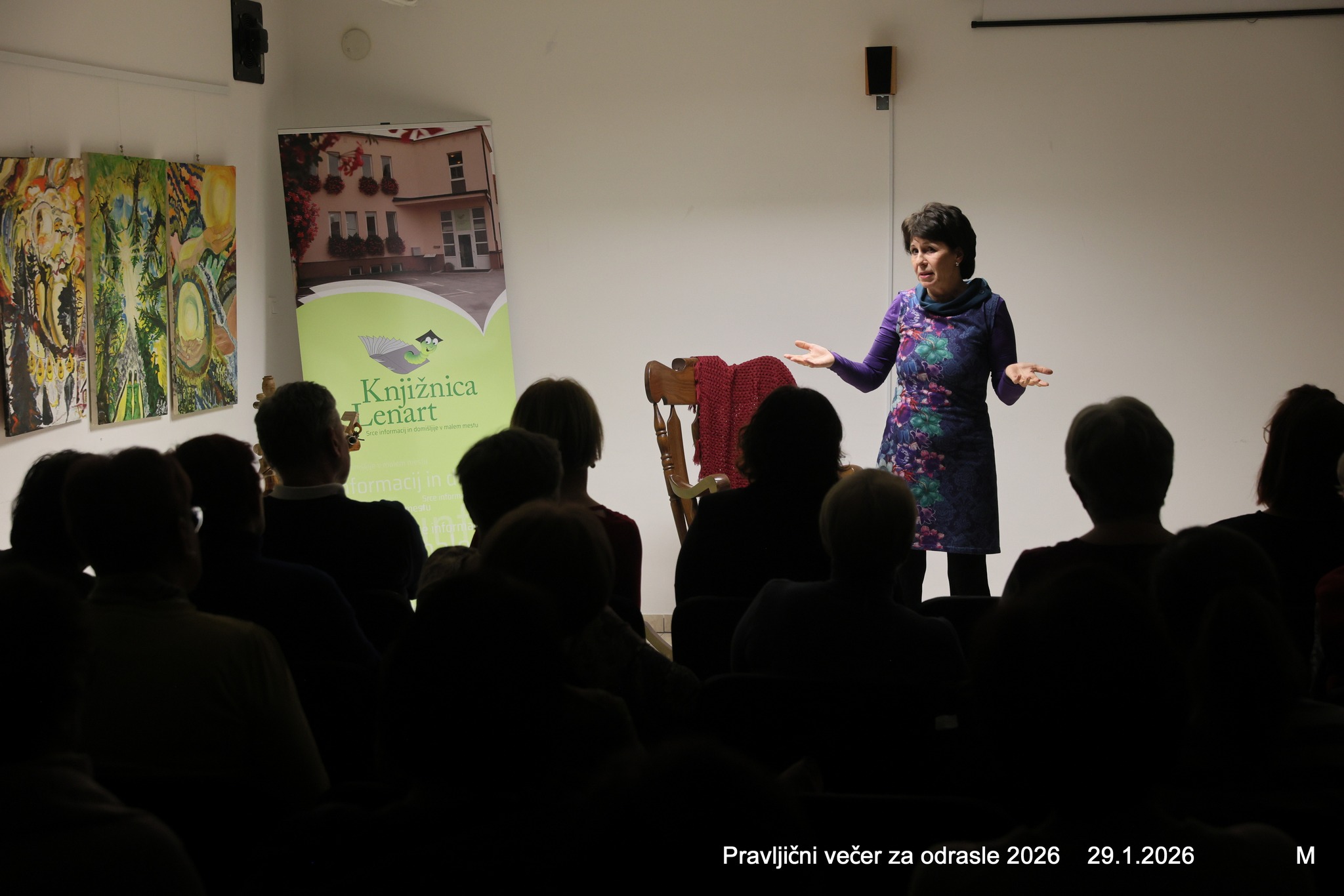 V četrtek, 29. januarja, so v Knjižnici Lenart pripravili Pravljični večer za odrasle, ki je del projekta, katerega že 17. leto koordinira Mariborska knjižnica. Uvodne misli sta z zbranimi podelili Zdenka Krautič in Nada Valdhuber, občinstvo pa je zapelo v družbi Denisa Čučka, ki ga poznamo kot člana zasedb Karneval band in Proti toči, proti poledici. S pripovedmi so navdušili Tone Obadič iz Mestne knjižnice Ljubljana, Silva Kos iz Knjižnice Antona Tomaža Linharta Radovljica, Marija Umek iz Kosovelove knjižnice Sežana in Vesna Radovanovič, tudi pisateljica, iz Pokrajinske in študijske knjižnice Murska Sobota. Kot zadnja je nastopila Aleksandra Papež, pripovedovalka, ki v projektu zastopa Knjižnico Lenart.