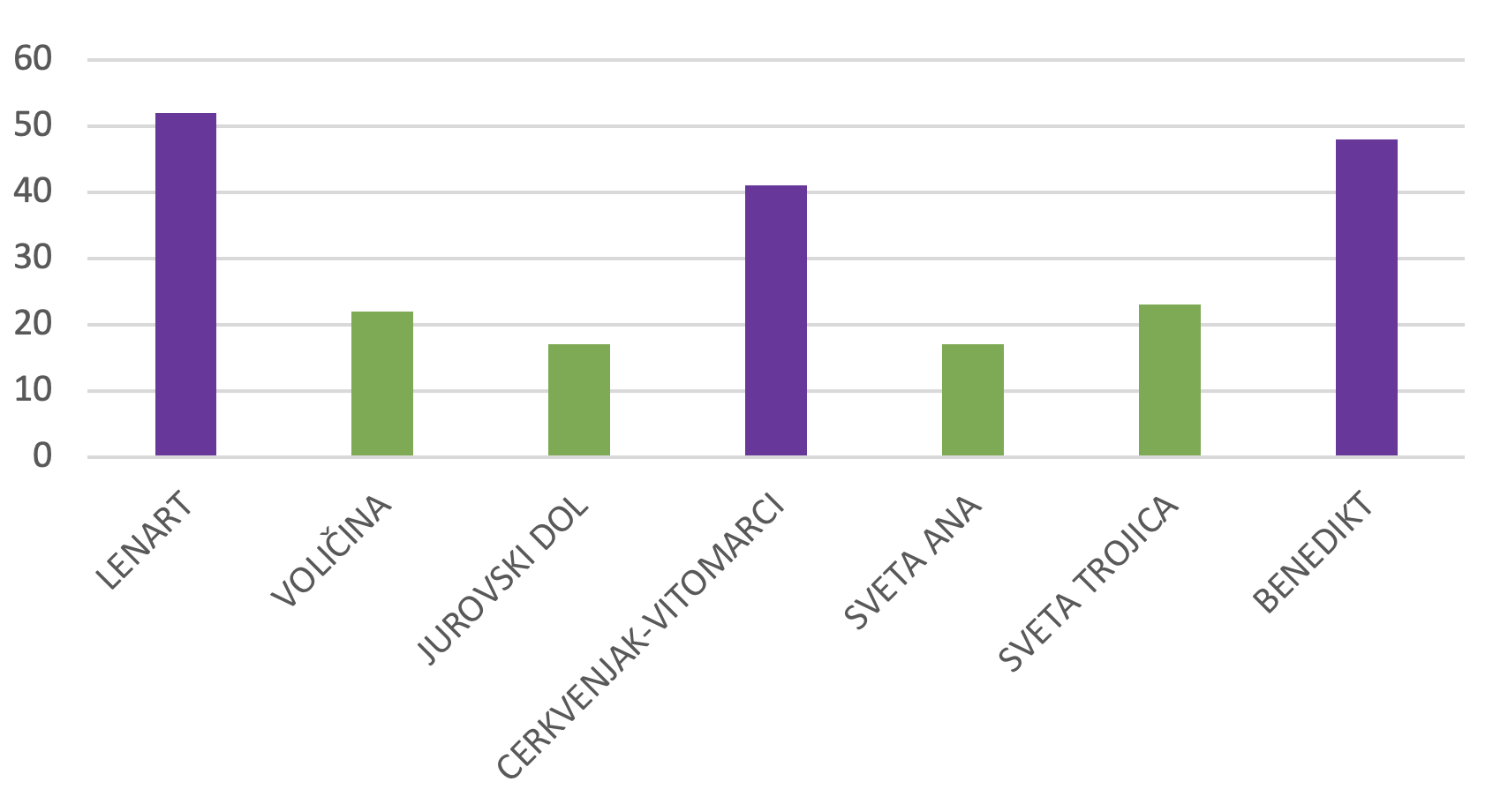V Lenartu bo vrtec obiskovalo 254 otrok, v Benediktu 139, v Voličini 99, v Jurovskem Dolu 83, pod okriljem OŠ Cerkvenjak-Vitomarci 181, na Sveti Ani 97 in v Sveti Trojici 111. Iz podatkov lahko sklepamo, da se za prihodnji vpis otrok v šole ni bati.