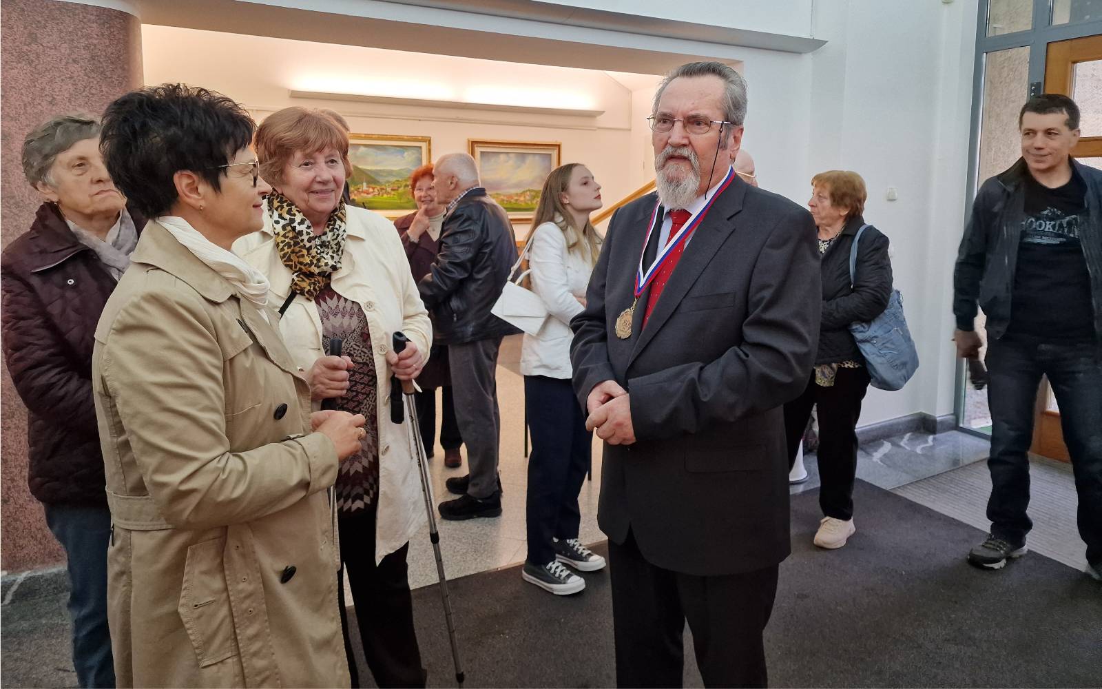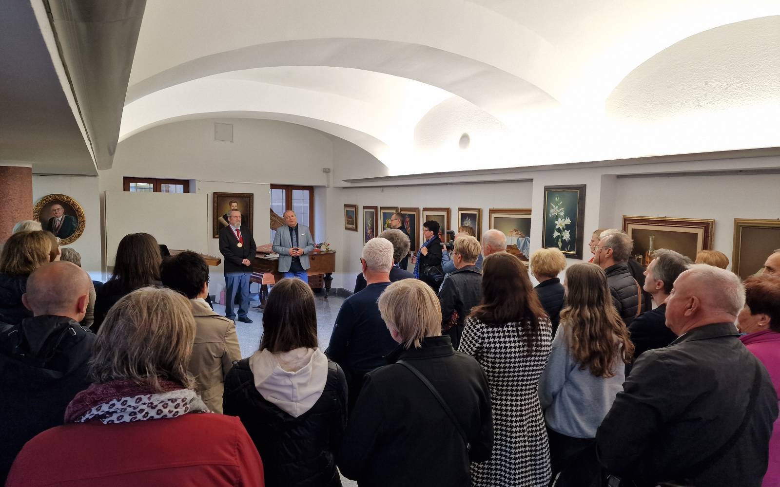 Avla Jožeta Hudalesa v prostorih lenarške občinske stavbe je bila na deževni petek popoldan, 25. aprila, polna kot že dolgo ne, saj se je otvoritve razstave slik Jožeta Krambergerja udeležila množica obiskovalcev.