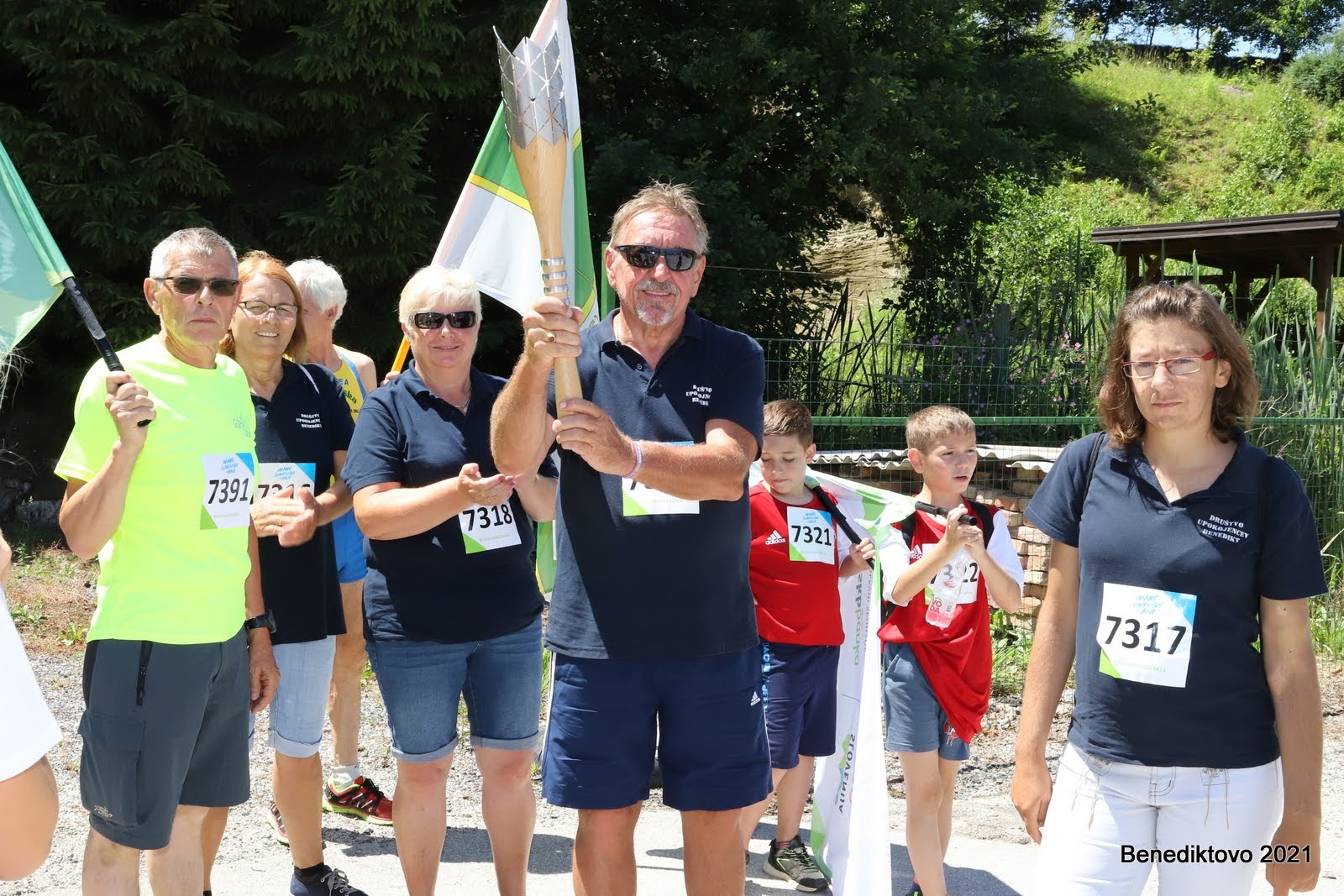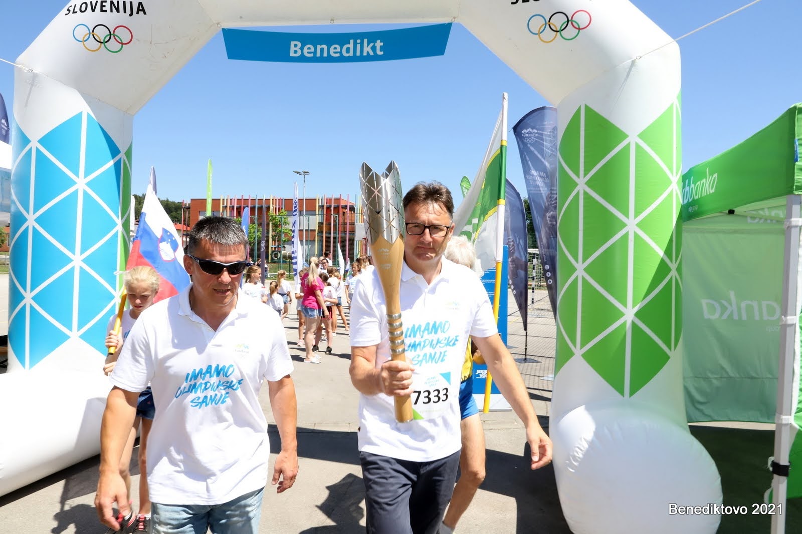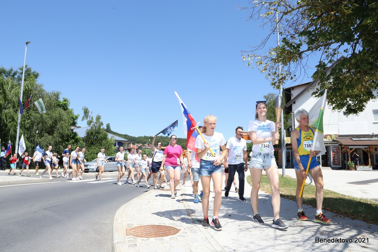 Še dobro, da naslednja postaja – Benedikt ni daleč, bi lahko dejali za poln želodec. Tam so Slovensko baklo na igrišču pred športno dvorano znova pričakale mažoretke z ubrano koračnico. Zbrane je nagovoril župan Milan Repič ter prvi podpredsednik OKS-ZŠZ mag. Janez Sodržnik. Na krožno pot so se kot prve podale članice Mažoretnega in twirling kluba Benedikt. Ognjeno štafeto so pred gotskim biserom – cerkvijo Svetih Treh Kraljev v Slovenskih goricah prevzeli mladi upi iz Kluba malega nogometa nato so za plamenico poskrbeli člani Odbojkarskega kluba, čast zadnjih pa je pripadla Društvu upokojencev Benedikt, ki so ognjeno štafeto prinesli na igrišče, kjer se je krog tudi sklenil.