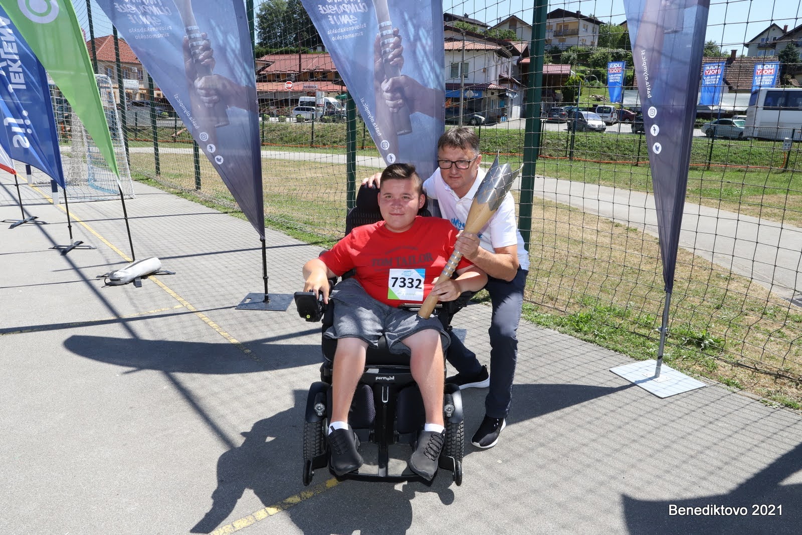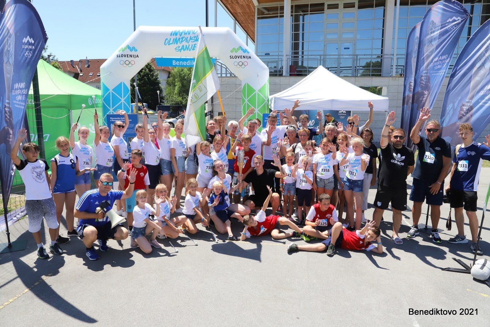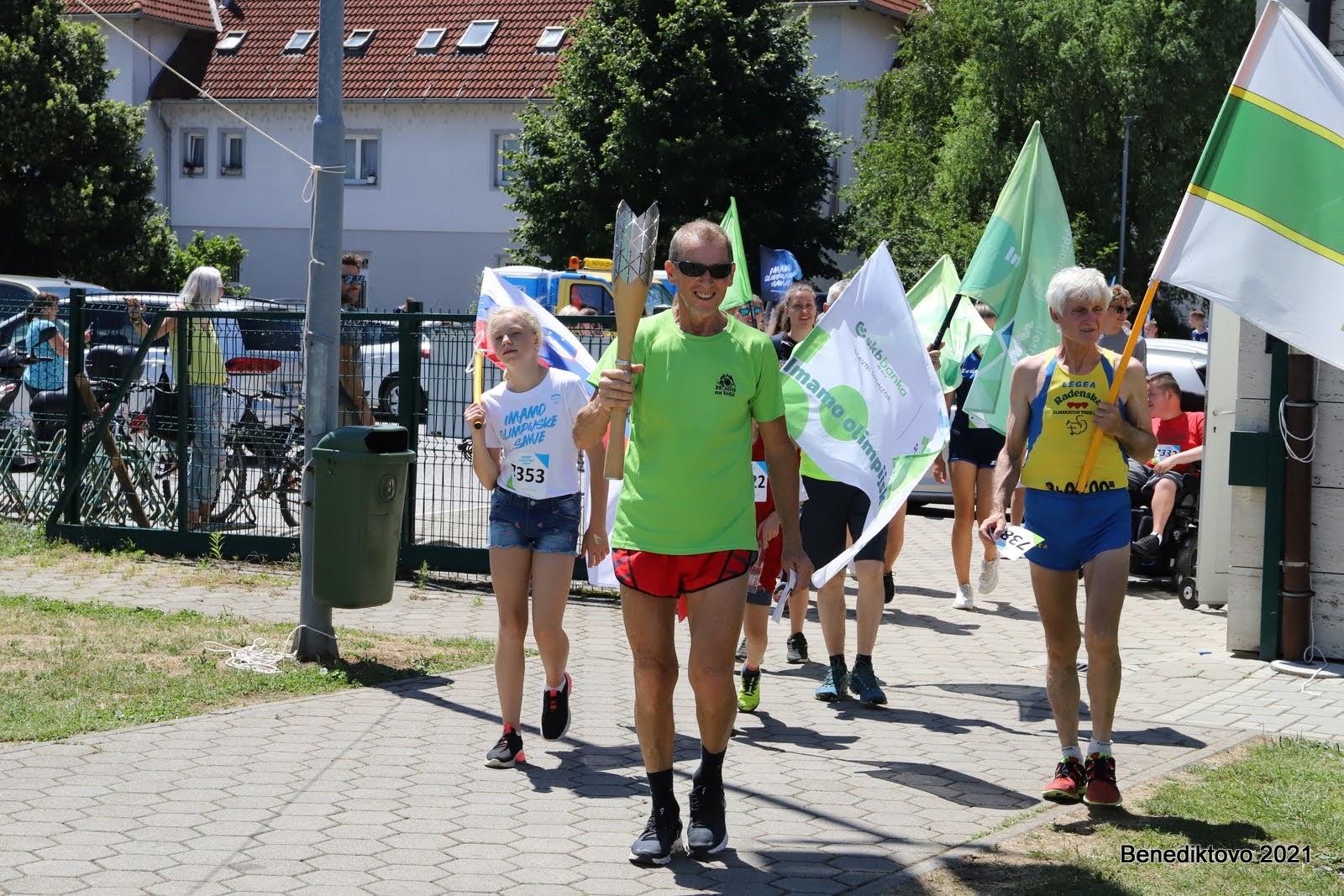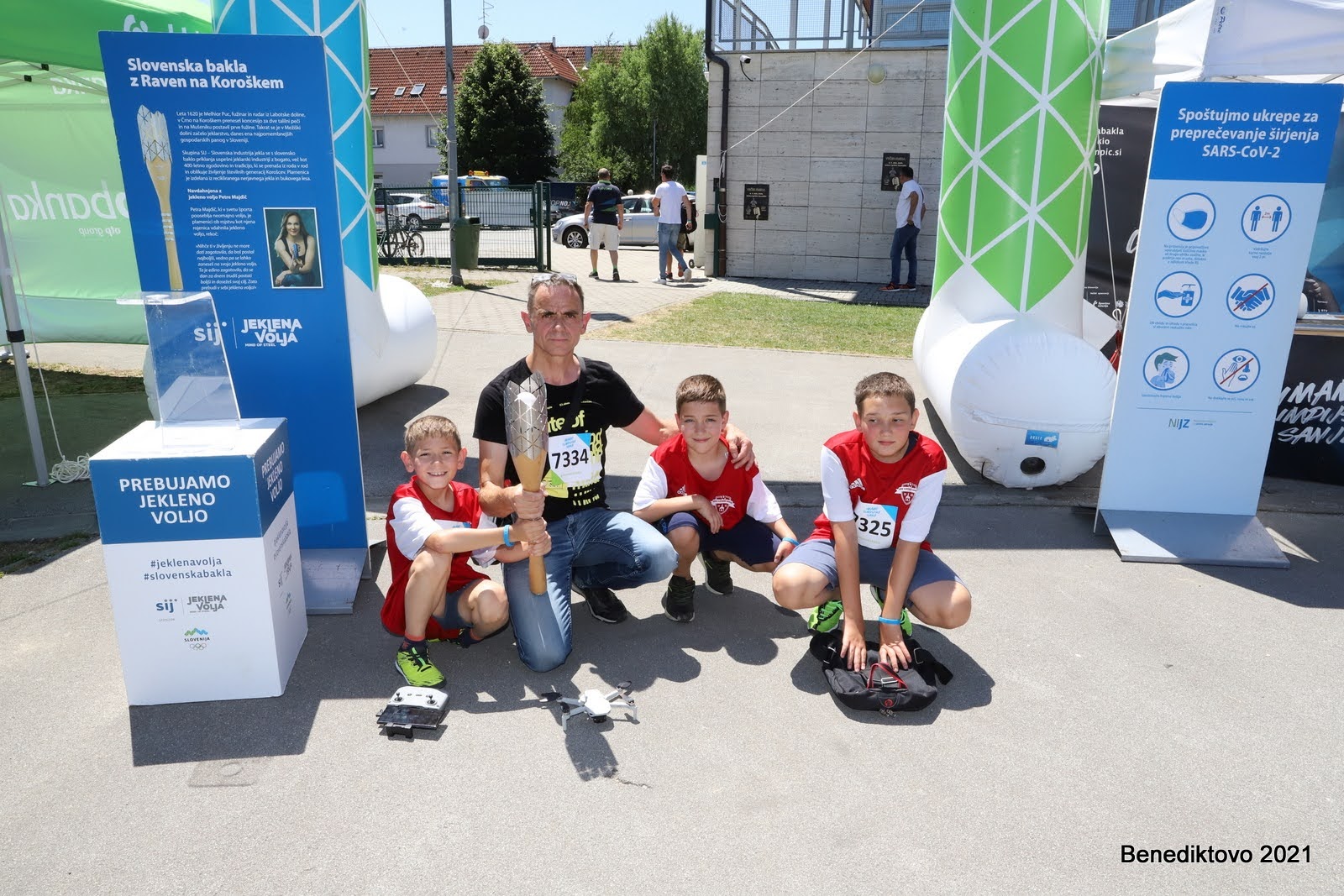 Še dobro, da naslednja postaja – Benedikt ni daleč, bi lahko dejali za poln želodec. Tam so Slovensko baklo na igrišču pred športno dvorano znova pričakale mažoretke z ubrano koračnico. Zbrane je nagovoril župan Milan Repič ter prvi podpredsednik OKS-ZŠZ mag. Janez Sodržnik. Na krožno pot so se kot prve podale članice Mažoretnega in twirling kluba Benedikt. Ognjeno štafeto so pred gotskim biserom – cerkvijo Svetih Treh Kraljev v Slovenskih goricah prevzeli mladi upi iz Kluba malega nogometa nato so za plamenico poskrbeli člani Odbojkarskega kluba, čast zadnjih pa je pripadla Društvu upokojencev Benedikt, ki so ognjeno štafeto prinesli na igrišče, kjer se je krog tudi sklenil.