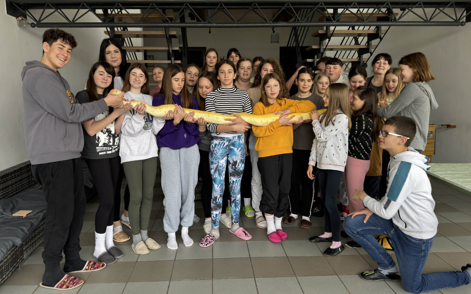 V soboto zjutraj je cerkvenjaške učence obiskala ekipa društva Pepson's eksotične živali. Spoznali so devet različnih eksotičnih živali, se z njimi rokovali in se o njih veliko naučili.