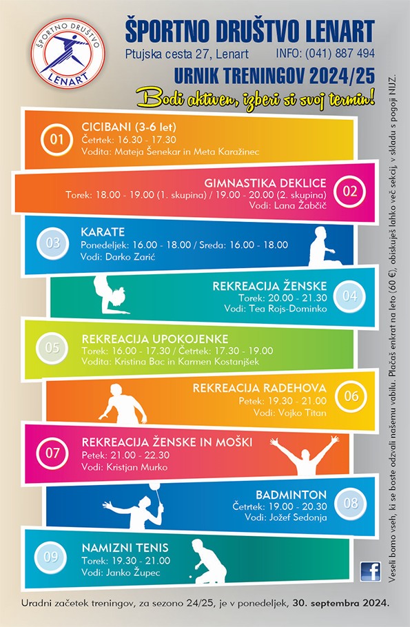 V Športnem društvu Lenart se z rekreativno gimnastiko trenutno ukvarja približno 30 deklic, ki jih trenirata Lana Žabčič s pomočjo Nike Vezovnik. Dekleta so razdeljena v dve starostni skupini in vsak teden vadijo po 60 minut v gimnastični telovadnici Športne dvorane Lenart.