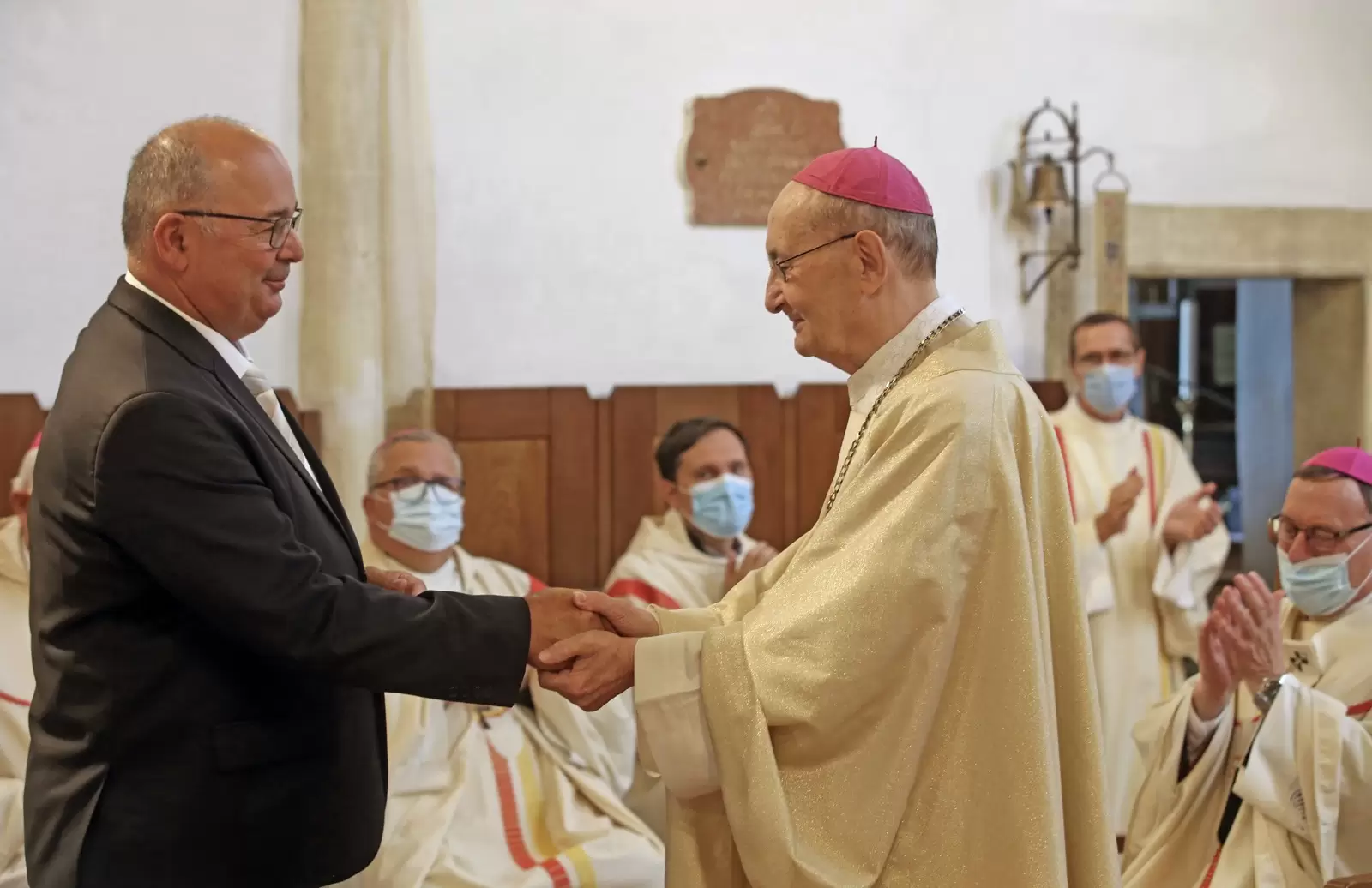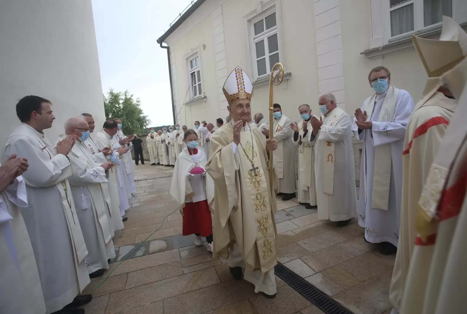 »Kadar koli premišljujem o zahvali, se spomnim popevke z naslovom »Hvala«. Tudi sam nimam druge besede. Najprej hvala Bogu, da mi je dal moč, da me je postavil v to službo. Hvaležen sem za starše, štiri sestre in dva brata ter krščansko vzgojo, ki smo je bili deležni. Vse, kar premorem, je milost. Je duhovna dediščina, ki jo nosim v srcu,« je v zahvali dejal Franc Kramberger, ki se je zahvalil tudi škofom in duhovnikom, še posebej pokojnemu pomožnemu mariborskemu škofu Jožetu Smeju in trenutnemu nadškofu mariborske nadškofije Alojziju Cviklu za njegovo homilijo ter vsem, ki so oblikovali slovesnost.