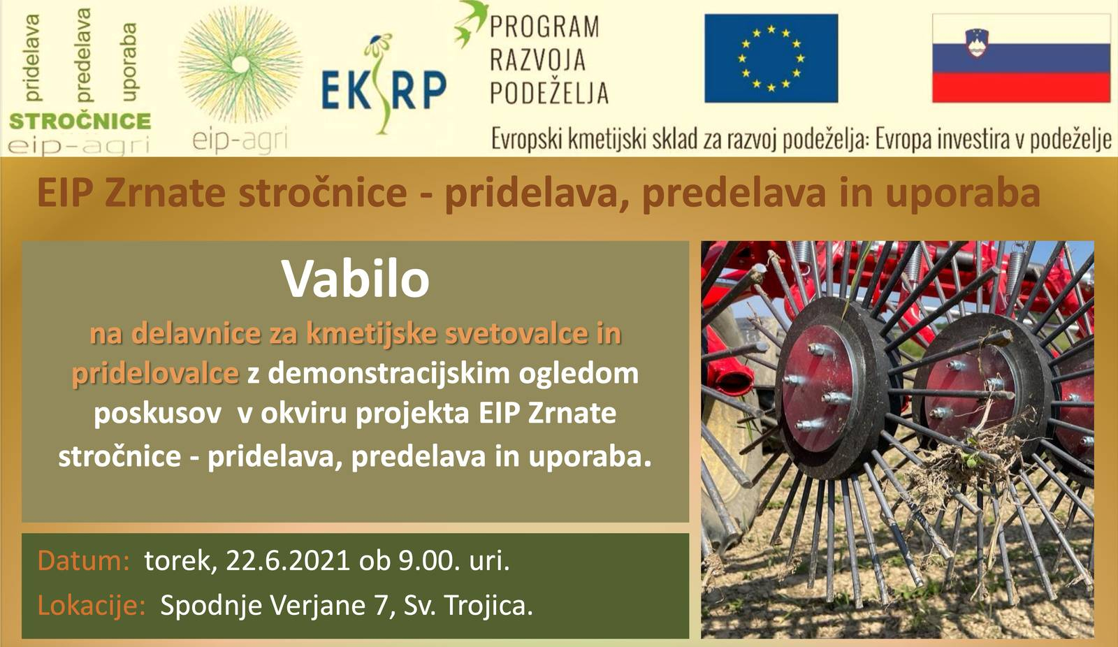 Zmagoslav Šalamun Kategorija: Lokalno Čas branja: 1 min Objavljeno: 17 junij 2021 Delavnica prenos znanja EIP Zrnate stročnice – pridelava, predelava in uporaba Preberite več …