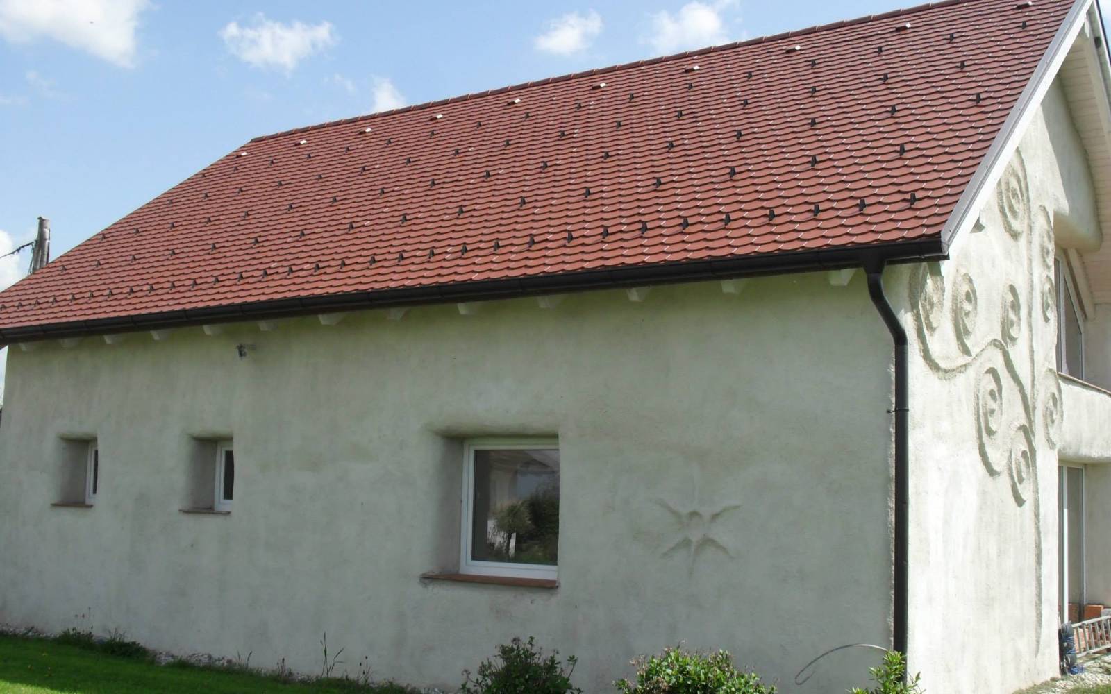Arhitekt Matjaž Rožec napoveduje, da se bomo pri izbiri gradbenih materialov vse bolj obračali k naravnim, kot sta na primer les in ilovica. Na posnetku hiša klasične gradnje z izolacijo s slamnatimi balami ter zunanjim apnenim in notranjim ilovnatim ometom. Foto: Kristijan Zver