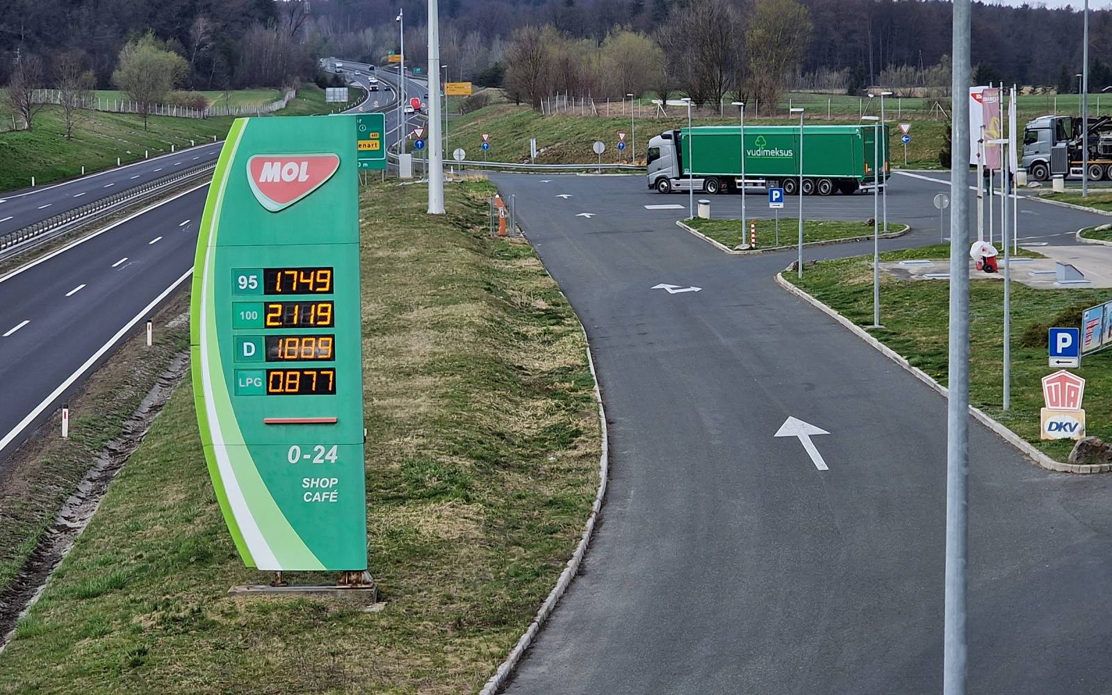 Na servisih ob avtocestah so cene najbolj zvišali pri Molu. Liter 95-oktanskega bencina je od reguliranih cen dražji za 28,3 centa, liter dizla pa stane 36,1 centa več. Foto: Senka Dreu