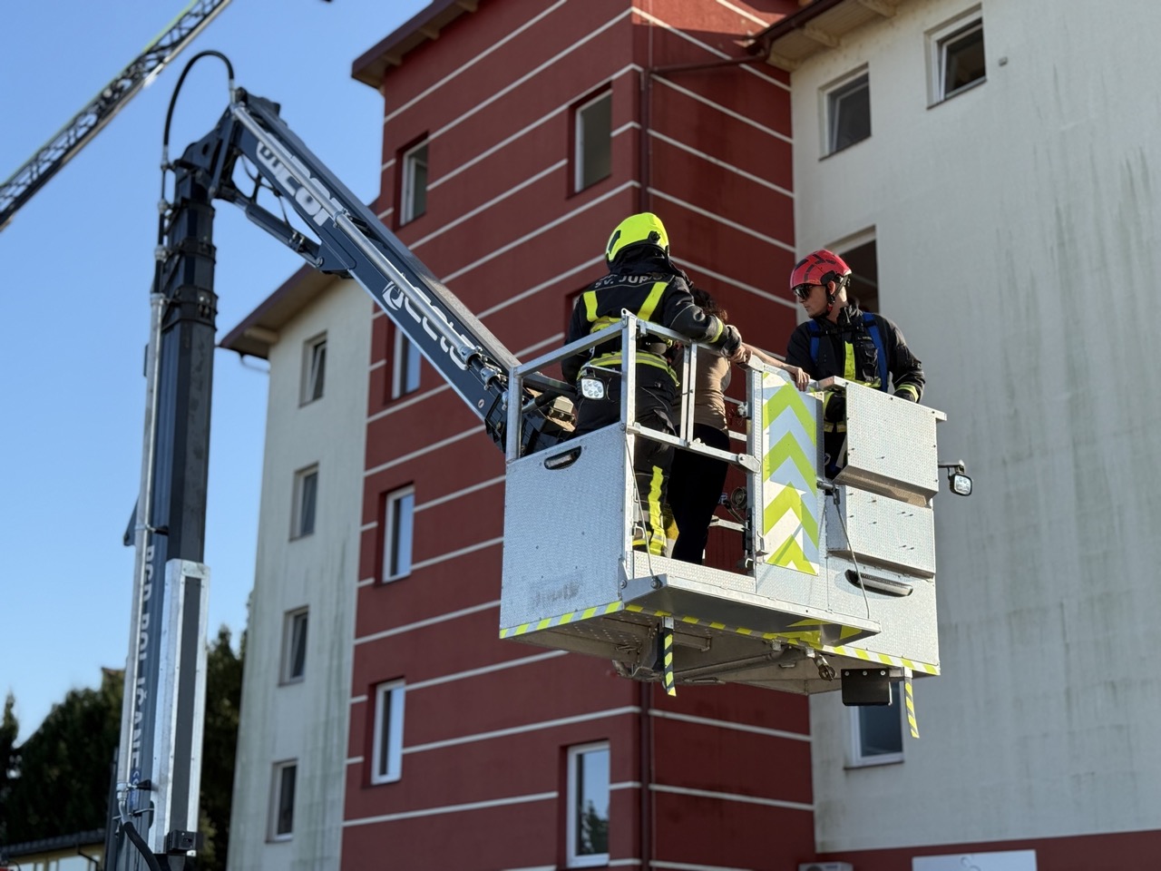 Vrhunec je sledil pri bloku ob vrtcu, kjer so se v nebo dvignile lestve in ploščad. Gasilci Gasilske brigade Maribor so z avtolestvijo reševali ujeto osebo, PGD Poljčane pa je pokazalo moč svoje dvižne ploščadi. V trenutku, ko so ljudje visoko nad tlemi skozi okno stopili v varno jekleno roko, se je množica obiskovalcev odzvala z aplavzom. Tako so gledalci lahko videli dejansko razliko med reševanjem z lestvijo, ki omogoča predvsem hiter dostop gasilcev, in reševanjem s ploščadjo, ki nudi varno in stabilno pot za prenos obnemoglih ali poškodovanih oseb. Prav takšna ploščad bi v prihodnje pomembno okrepila tudi zmogljivosti GZ Lenart, odločitev o nakupu pa je v rokah županov in občinskih svetnikov, ki bodo na občinskih sejah podali svoj glas za nakup gasilske platforme.