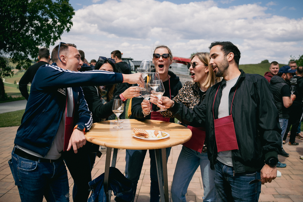 Med sprehodom po razigranih jurovskih gričkih smo obiskali Vino Finšter, vino Aljaža in Vladimirja Toplaka ter Marjana Senekoviča, Vinogradništvo Dvoršak, Cabal – Vinogradništvo Križovnik in Vina Toplak. Vsak s svojo zgodbo, vsak s svojo vinsko cvetlico – od živahnega sauvignona do nežno cvetličnega muškata in svežega laškega rizlinga. Končna točka druženja je bila pri Konrad Wine, kjer nas ni navdušilo le vino, ampak tudi razgled, ki bi ga z veseljem podpisal še kak svetovni popotniški vodič. Tu se je dan tudi zaključil – z družabnim druženjem ob glasbi in ambientu, kjer je bilo čutiti veselje, domačnost in pa tudi nekaj veselih promilov skupnega zadovoljstva.