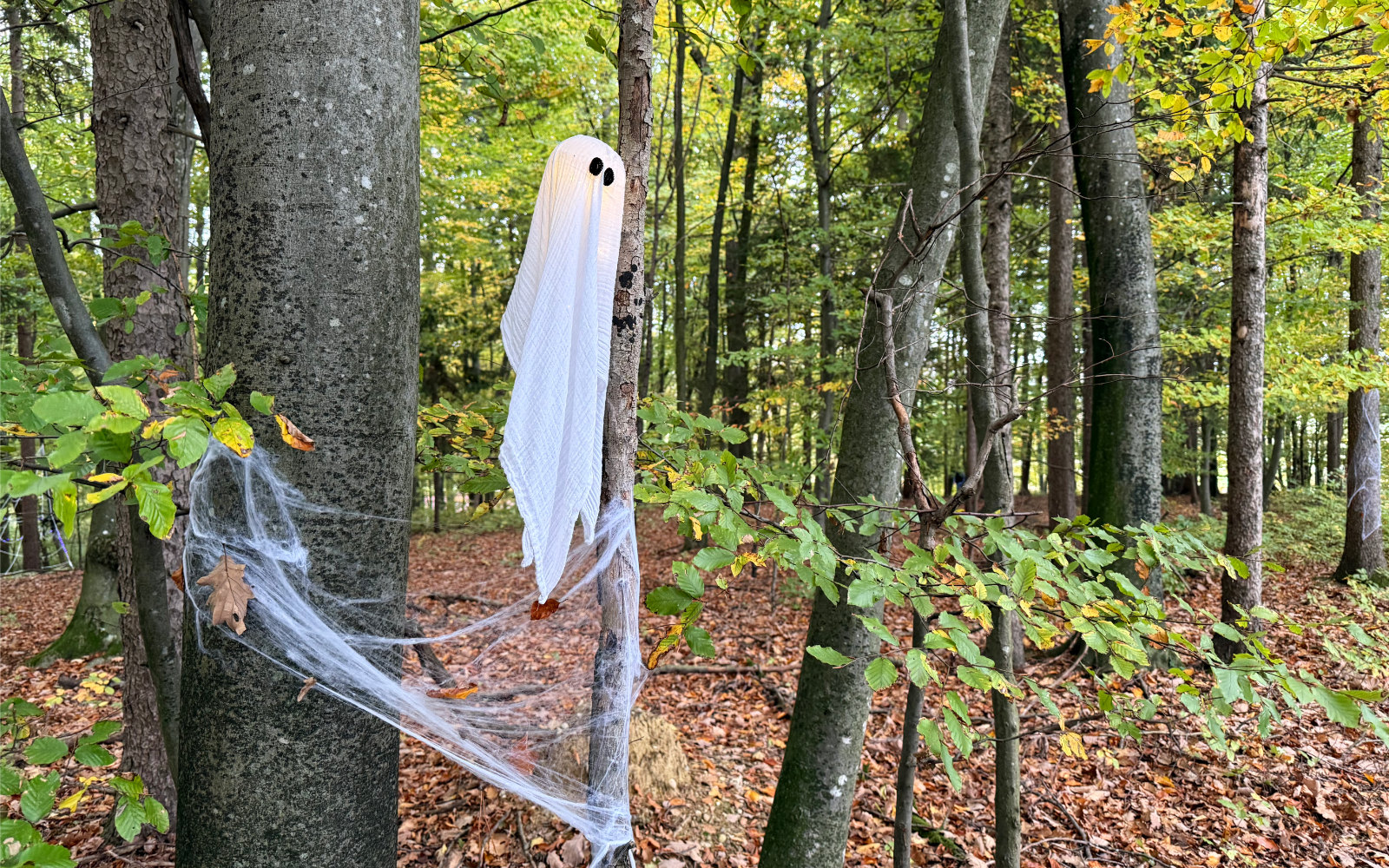 Med drevesi se lesketajo pajčevine, pajki pa potrpežljivo stražijo skrite črke, ki vodijo do končnega gesla. Otroci se najprej ustrašijo potem pa nasmejijo.
