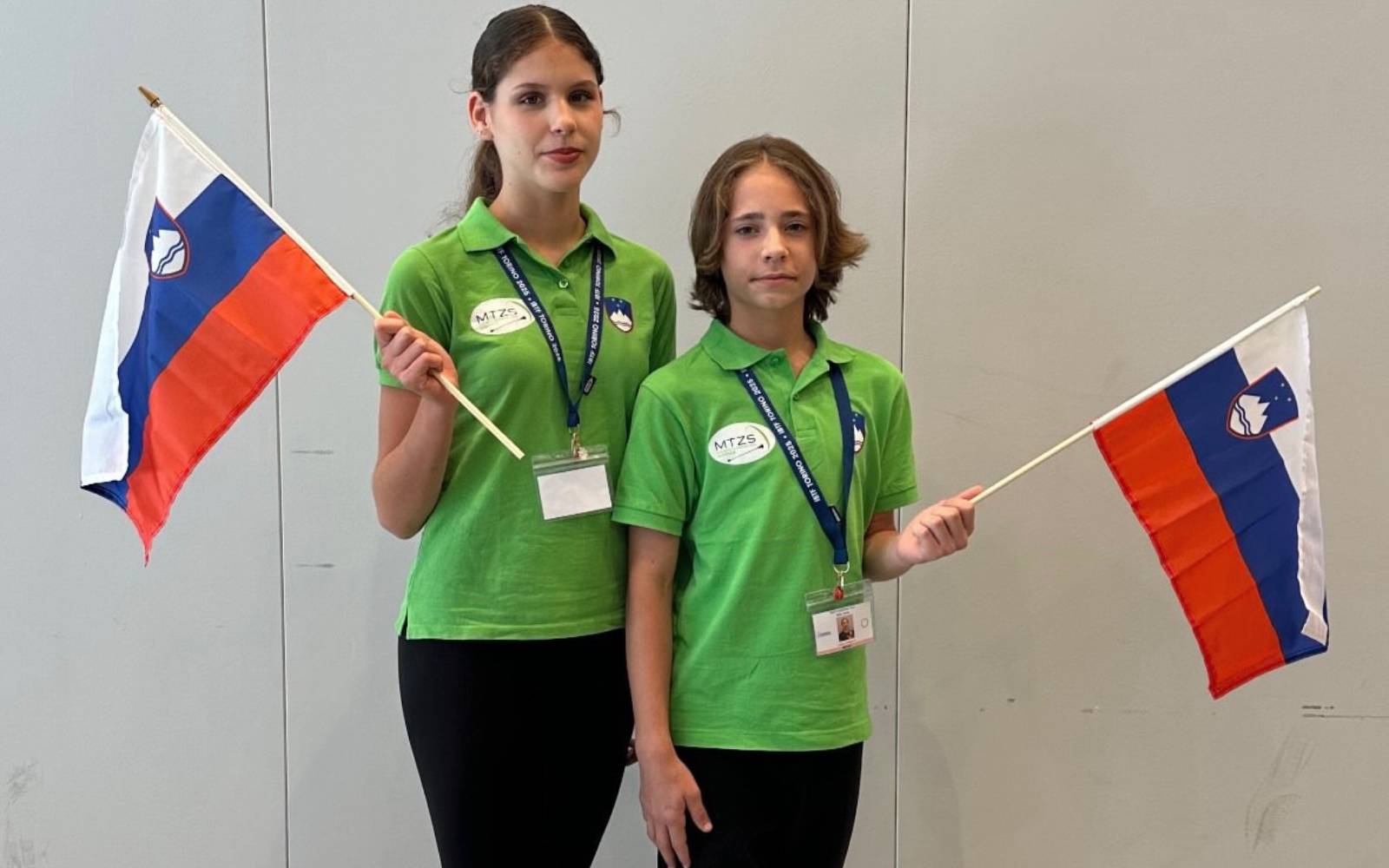 V finale svetovnega prvenstva v twirlingu, ki je potekalo v italijanskem Torinu, je Lenart poleg »zlatega« Gašperja zastopala tudi Ajda Perko. Foto: arhiv kluba
