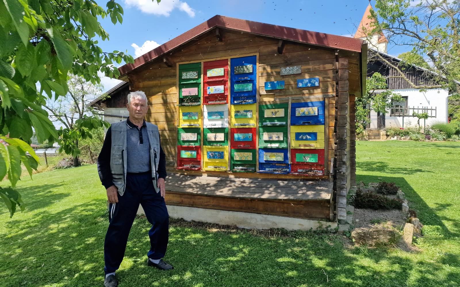 Na vrtu ima postavljeno hiško z devetimi panji. Ko sva si jih ogledala, je povedal zanimivost, in sicer da čebele privlači vonj laka za lase. »Zato žena ne sme blizu, ker jo takoj pičijo.« Povedano se je izkazalo za še kako resnično, saj so zaznale tudi mene in sem morala takoj odhiteti proč.