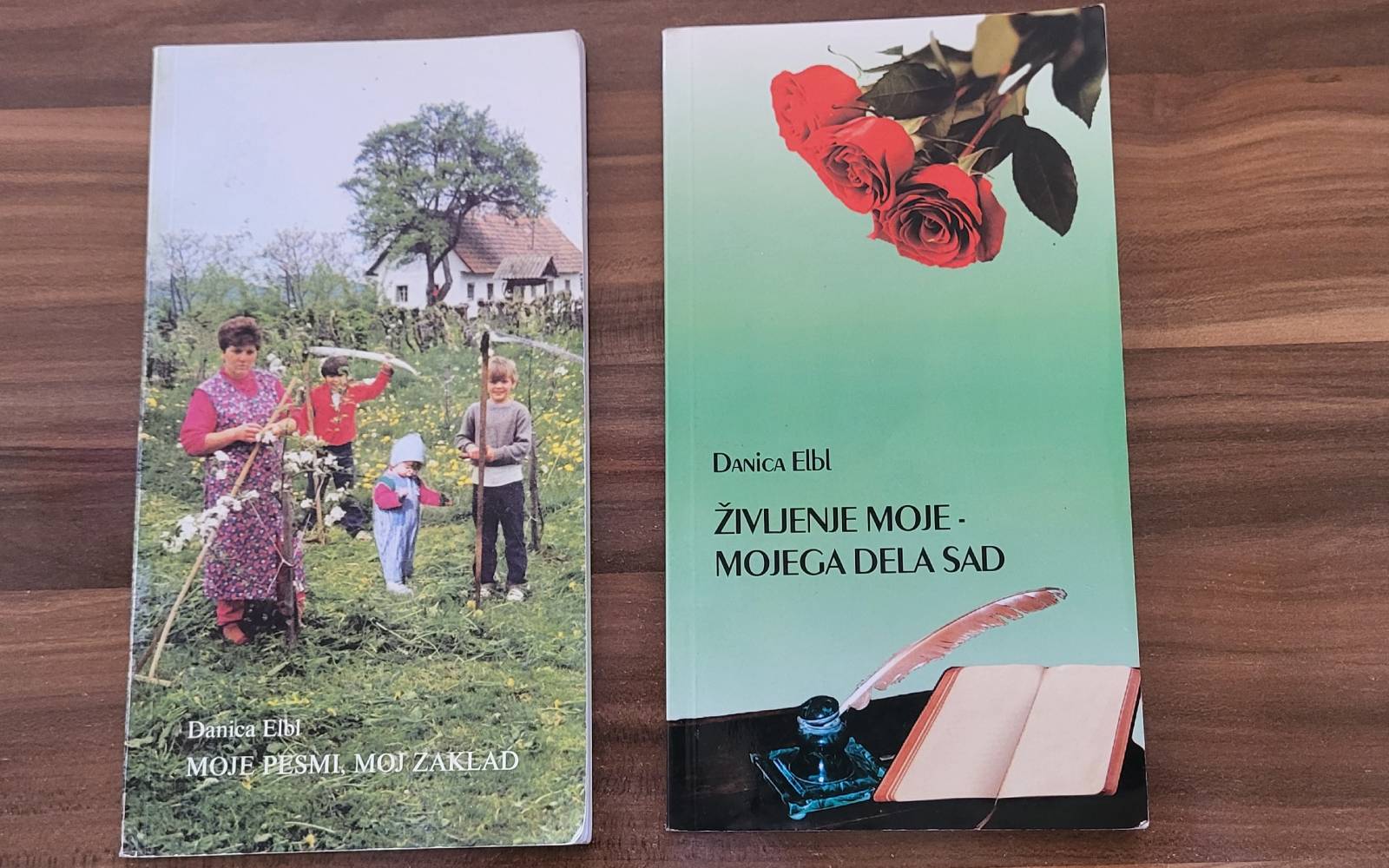 Zbirki pesmi Danice Elbl z naslovom Moje pesmi – moj zaklad in Življenje moje – mojega dela sad Foto: Jerneja Lovrec