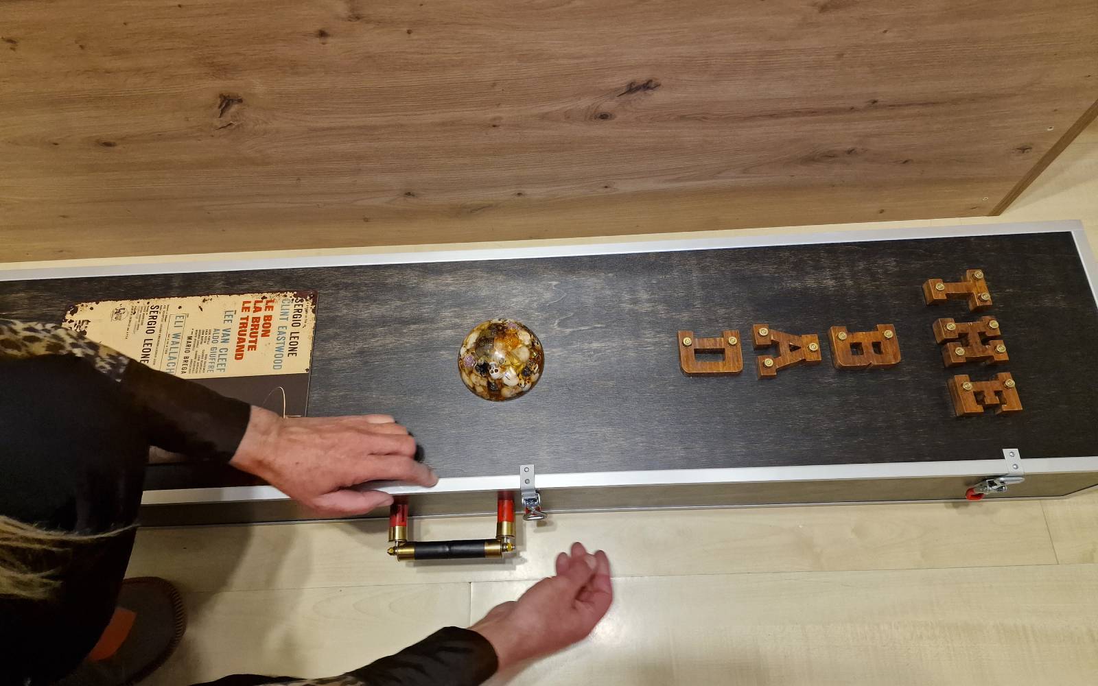 Nekaj posebnega so tudi kovčki za kitare. Ročaj tega na fotografiji je na primer izdelan iz naboja. Foto: Senka Dreu