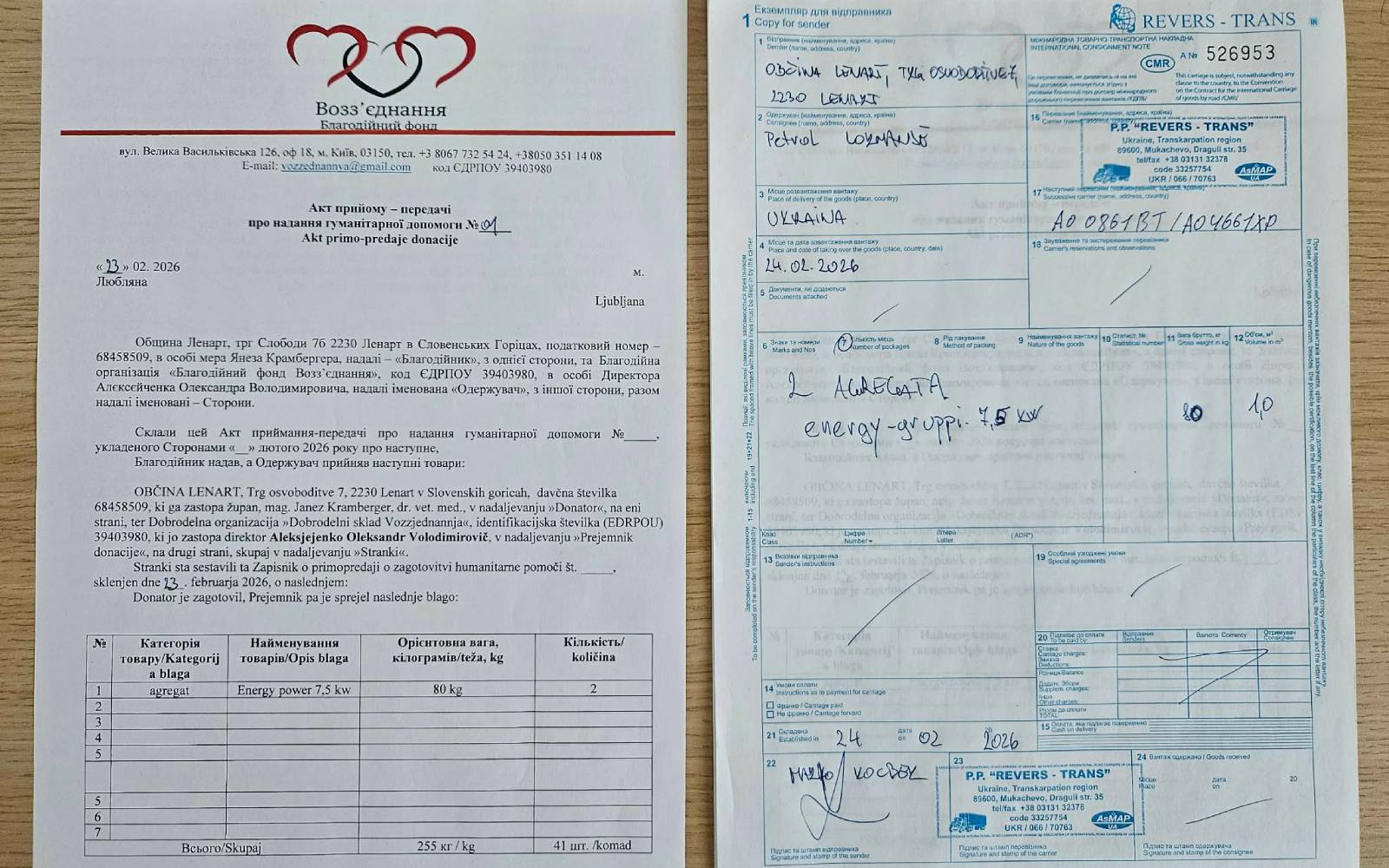 Dokumentacija o mednarodni donaciji Foto: JK