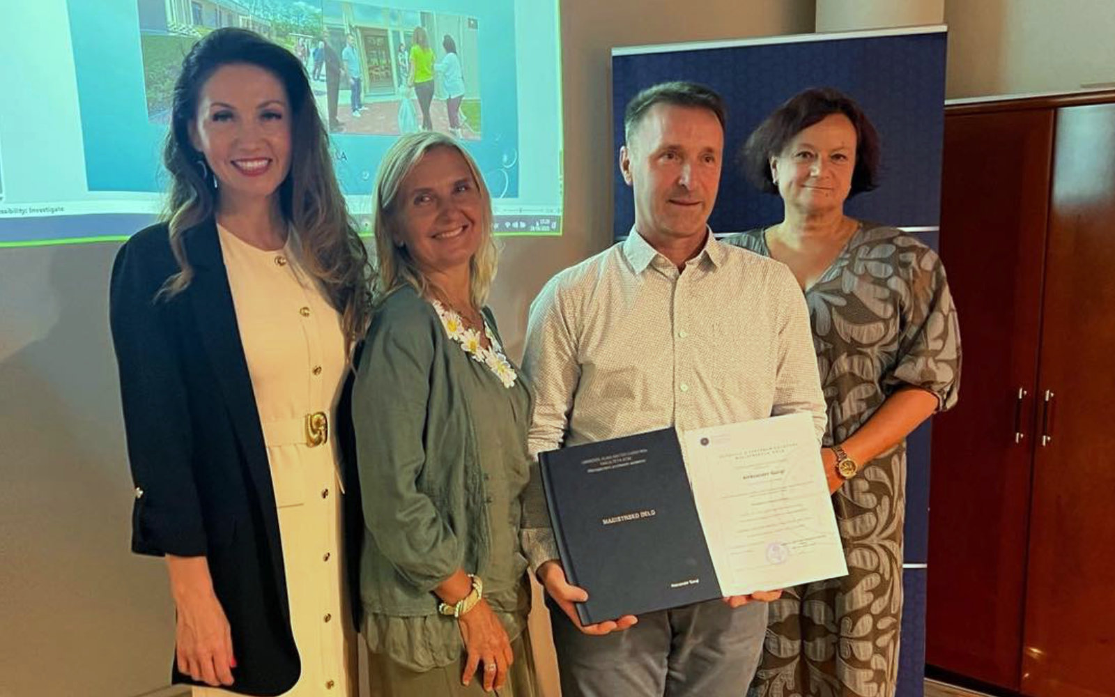 Leta 2025 je uspešno zagovarjal magistrsko delo o vplivu bivalnega okolja na staranje starejših s posebnimi potrebami. Delo je nastalo na programu Management poslovnih sistemov pod mentorstvom izr. prof. Mateje Vadnjal. Arhiv: Alma Mater Europea