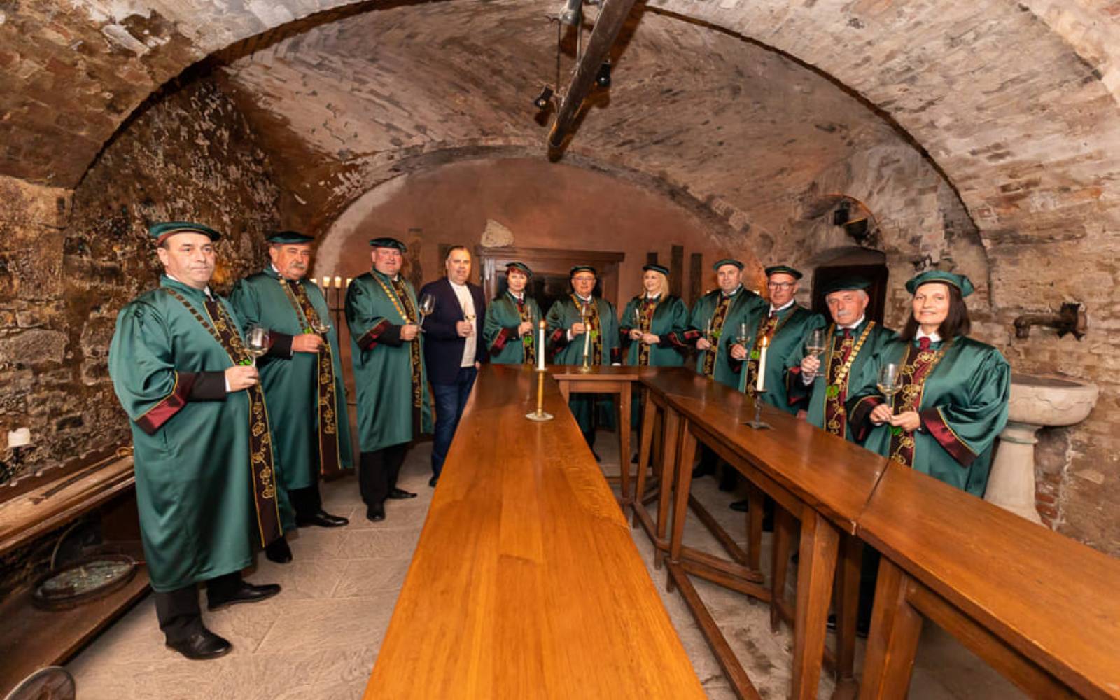Eden od prvih projektov EZTS naj bi bila ustanovitev vinske akademije. Na posnetku so člani mariborskega viteškega omizja, ki imajo od letos sedež svojega konzulata v gostilni Šiker. Foto: Askari