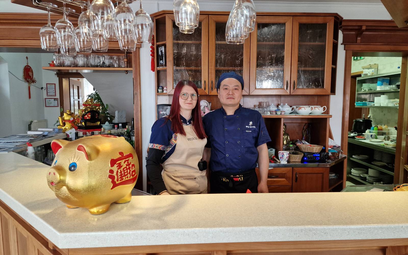 Jasna Hernet in Yan Xia za šankom nove trojiške restavracije. Foto: Senka Dreu