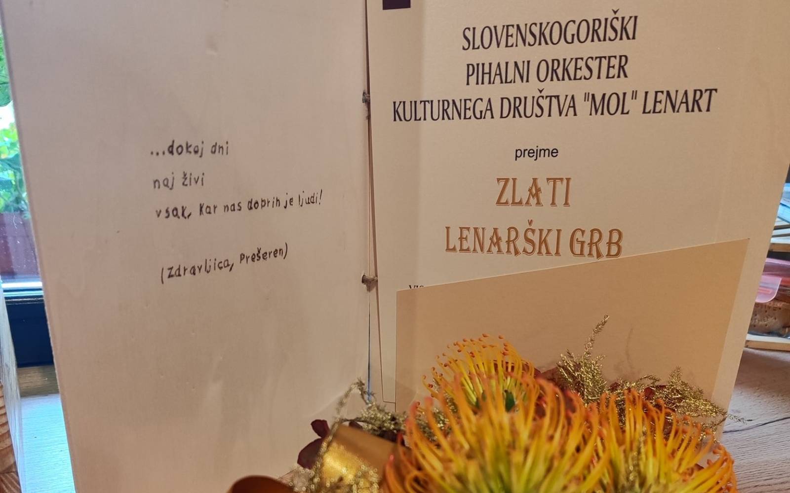 Najvišje priznanje – Zlati lenarški grb – je šlo v roke članom Slovenskogoriškega pihalnega orkestra Kulturnega društva MOL Lenart, in sicer za dolgoletno uspešno glasbeno delovanje, visoko raven umetniške ustvarjalnosti ter izjemen prispevek k razvoju in bogatitvi kulture v Slovenskih goricah.
