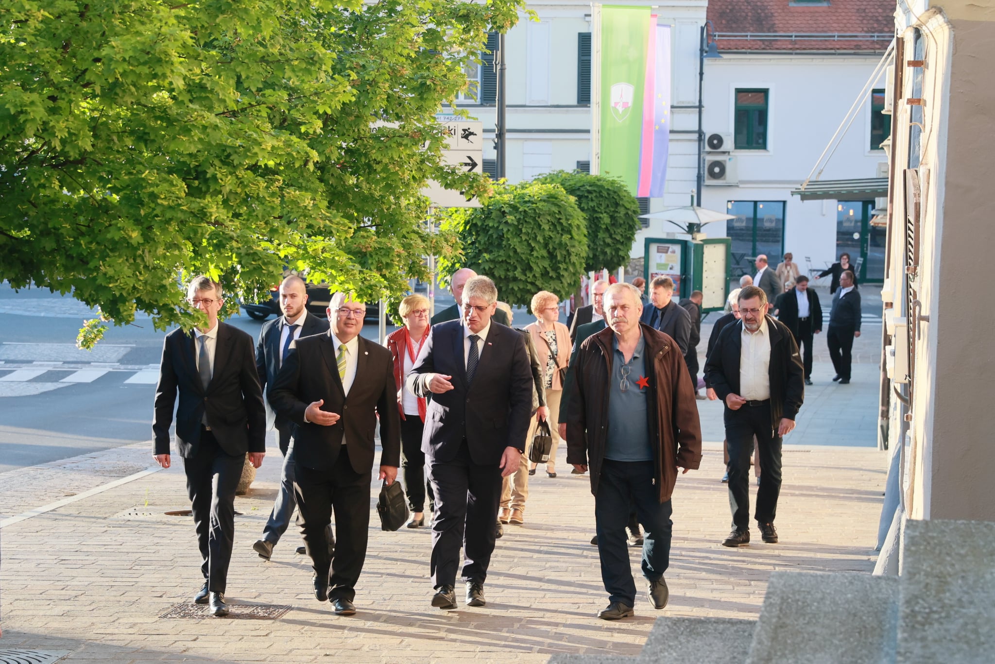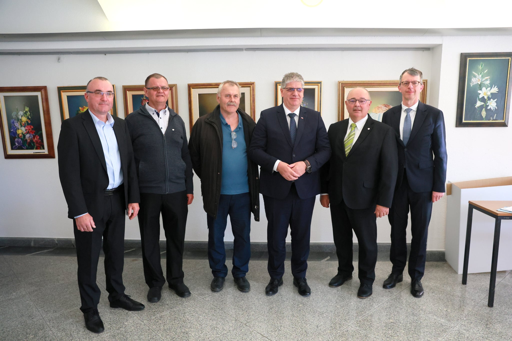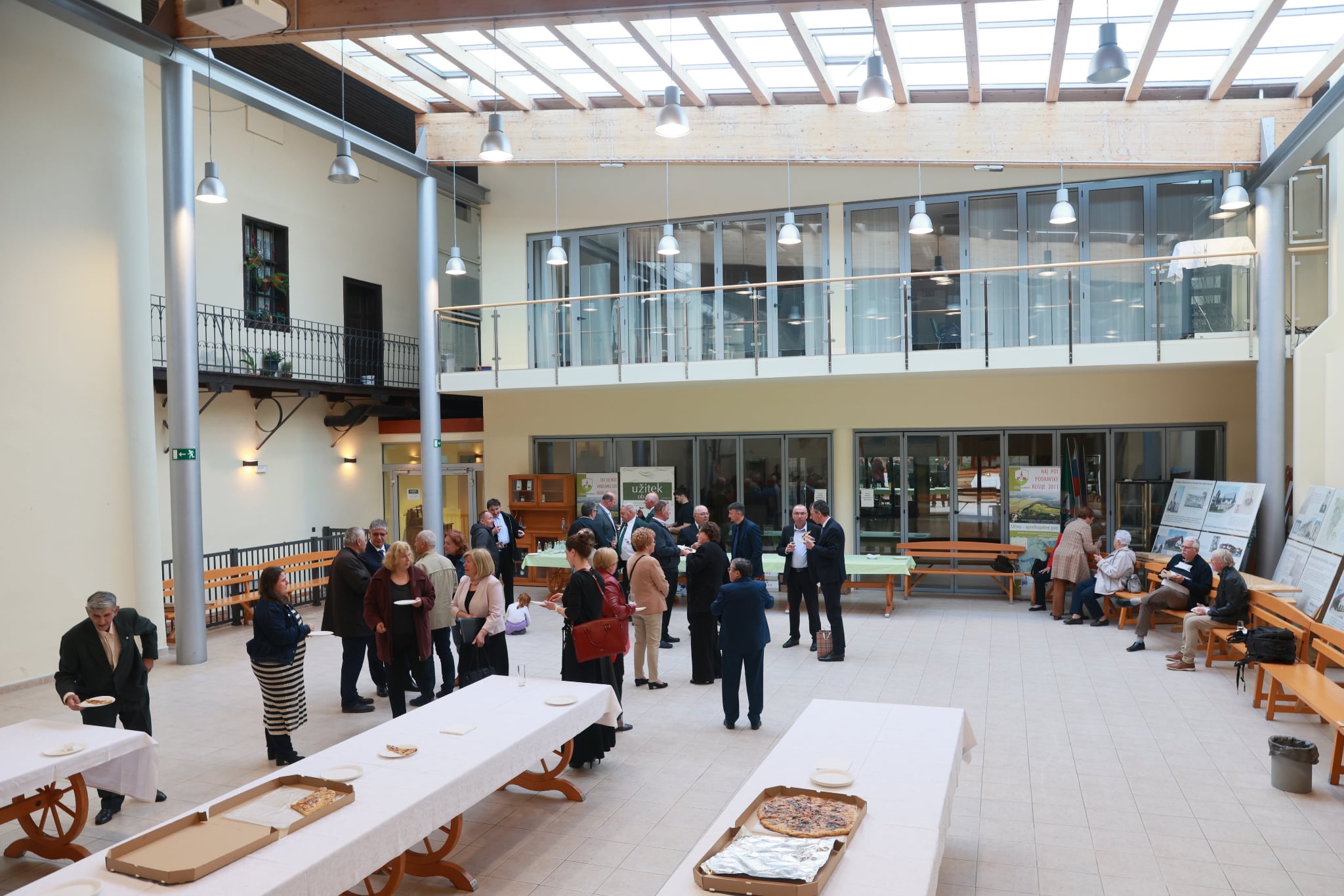 Po proslavi se je minister Poklukar zadržal v daljšem klepetu z županom in obiskovalci v Centru Slovenskih goric. Foto: Marjan Toš