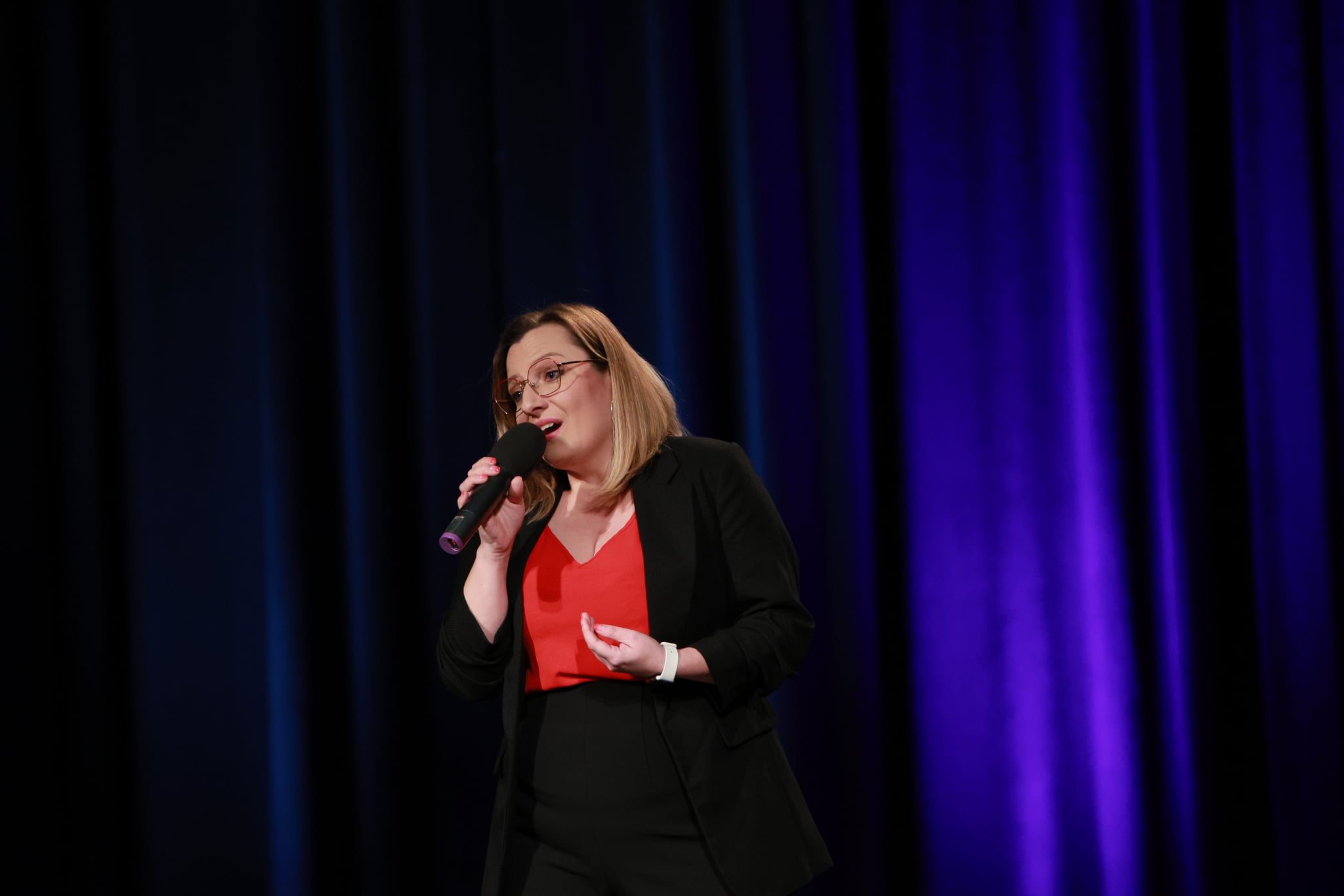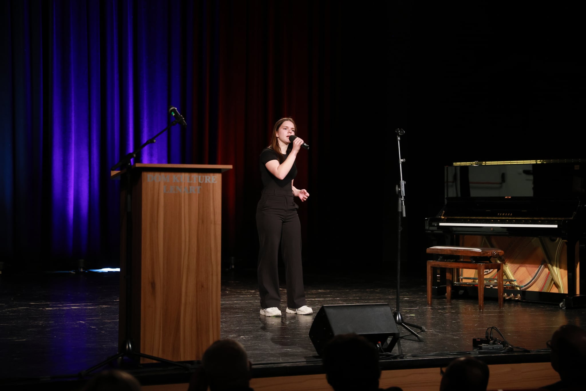Vanja Fekonja med prepevanjem pesmi Med iskrenimi ljudmi.