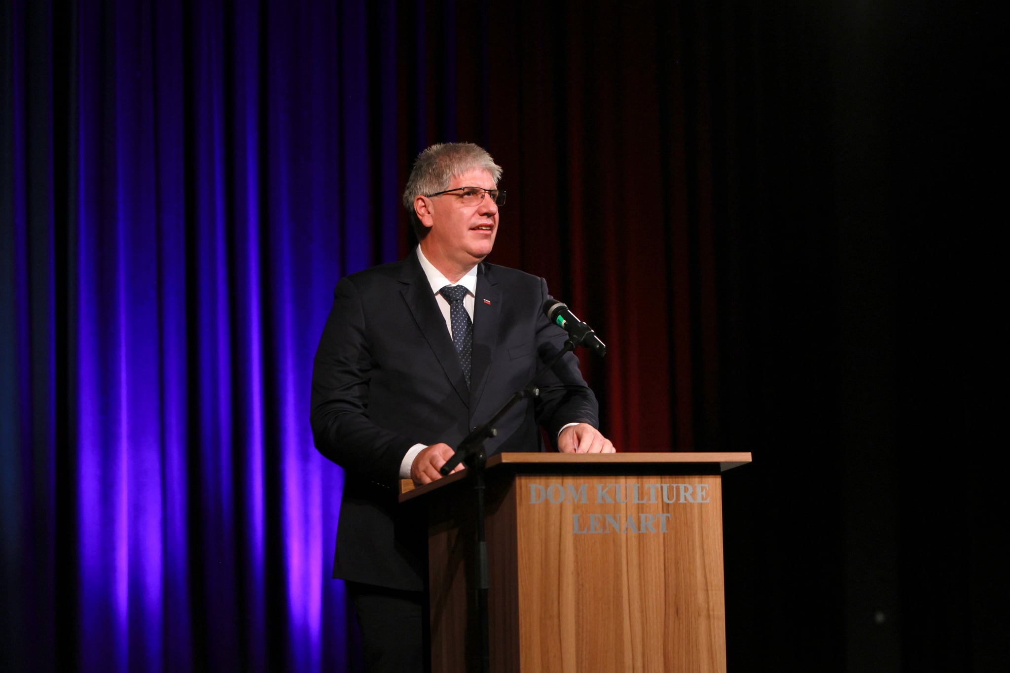 V domu kulture v Lenartu je bila slovesna proslava ob 80-letnici konca druge svetovne vojne. Pripravila sta jo Občina Lenart in Območno združenje borcev za vrednote NOB. Udeležence, med katerimi je bil tudi minister za notranje zadeve v vladi Republike Slovenije mag. Boštjan Poklukar, je nagovoril in pozdravil lenarški župan mag. Janez Kramberger. Med drugim je dejal, da je »druga svetova vojna pustila neizbrisen pečat na naši zgodovini, v srcih naših ljudi in v naši domovini. Druga svetovna vojna je v svet vnesla grozote, ki jih ne smemo nikoli pozabiti: milijoni mrtvih, razdejanje mest, trpljenje nedolžnih, in neizmerna bolečina celotnih generacij. Ob tej obletnici se poklanjamo vsem, ki so v vojni trpeli, umirali, in se borili za svobodo. Slavimo pogum in odločnost tistih, ki so vstali proti nacizmu in fašizmu«. Dotaknil se je tudi povojnega trpljenja in revolucionarnega nasilja nove oblasti in pozval k narodni spravi. »Kajti narod, ki zmore pogledati resnici v oči je narod, ki ima prihodnost. Naša dolžnost ni, da sodimo, temveč da razumemo. Da slišimo vse glasove preteklosti — tudi tiste, ki so predolgo ostali v tišini. Da učimo mlade o kompleksnosti naše zgodovine, ne zaradi prepirov, temveč zaradi modrosti«, je sklenil župan Kramberger. Obiskovalce je pozdravil tudi predsednik Območnega združenja za vrednote NOB Alojz Bezjak.